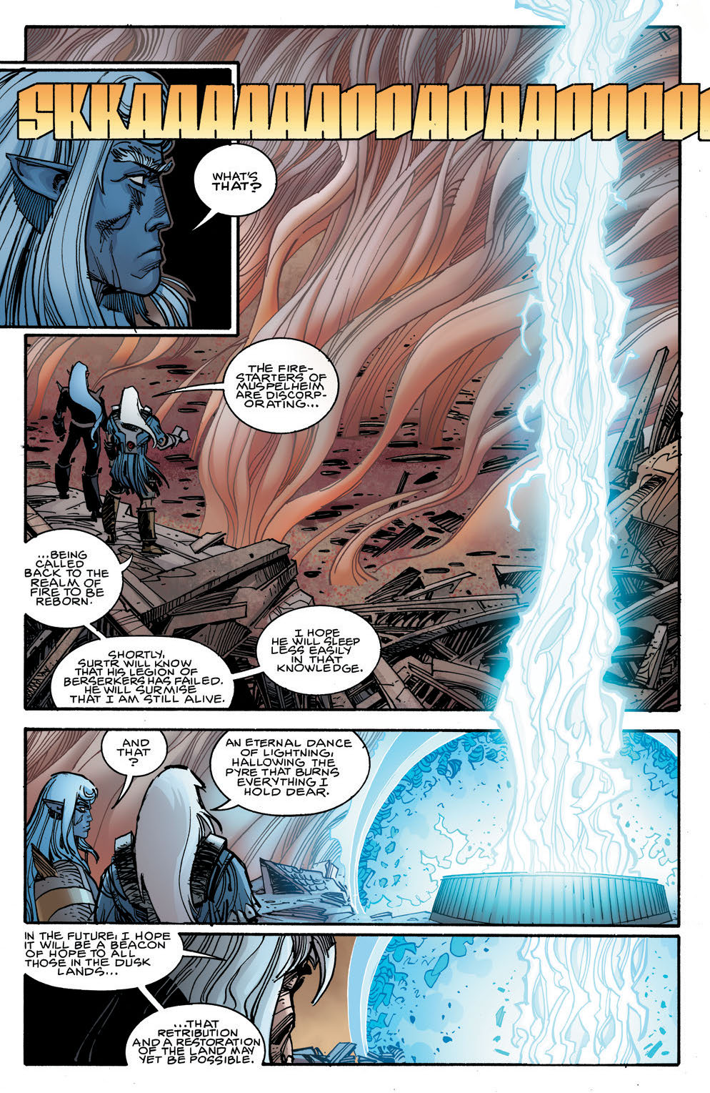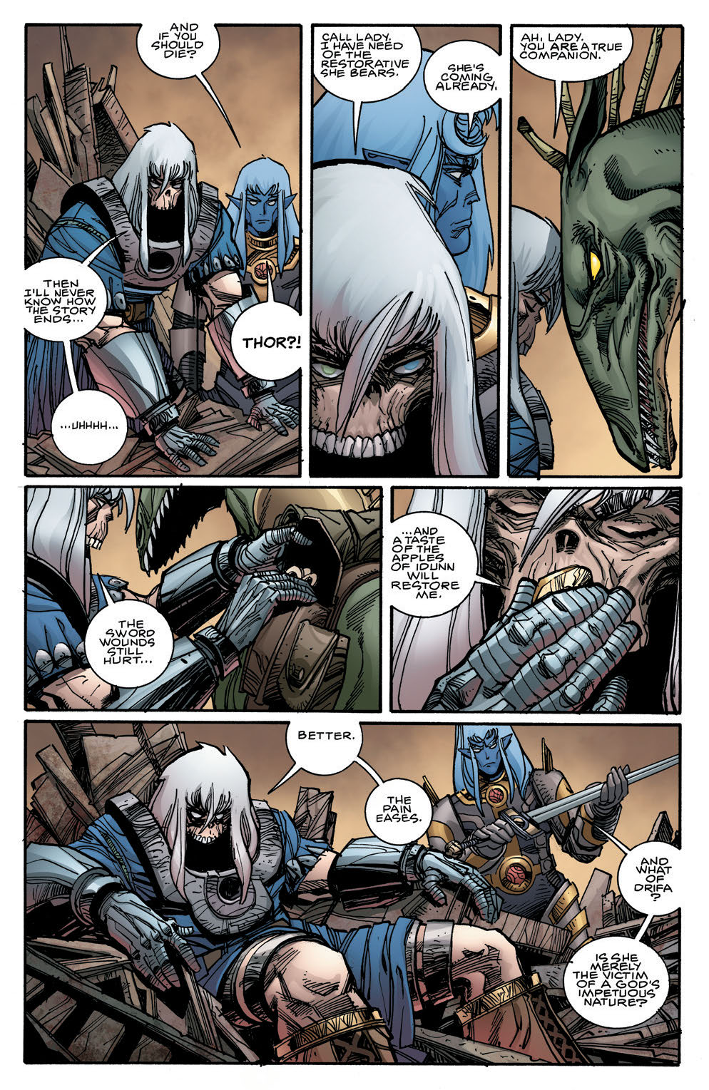 Amidst the smoking ruins of Asgard, the Black Elf assassin, Regn, stands ready to avenge his daughter’s death by killing the God of Thunder, who may or may not hold the key to the resurrection of his dead child.