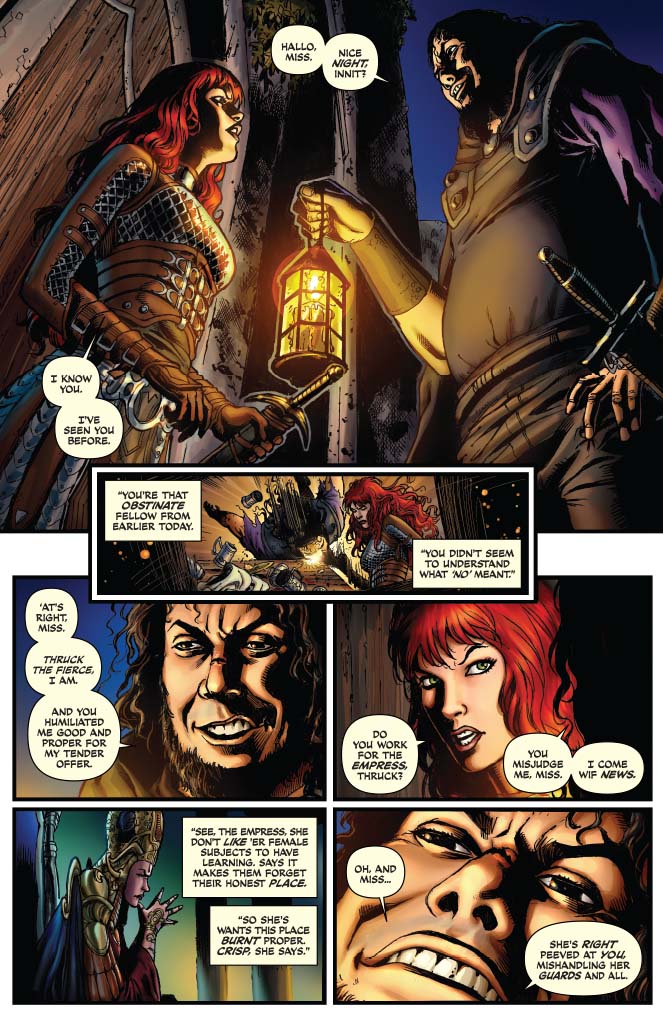 Gail Simone concludes her epic run on Red Sonja with the most heart-wrenching event in the life of our heroine! Face-to-face with the man she hates and distrusts most in the world, Red Sonja hears – for the first time ever – his side of the story. The last survivor of the craven murderers who wiped out her tribe finally comes clean at the end of Sonja’s blade. But then… something wholly shocking and unexpected happens. Nothing will prepare you for what’s to come, as Sonja’s infamous blood rage comes to a boil!