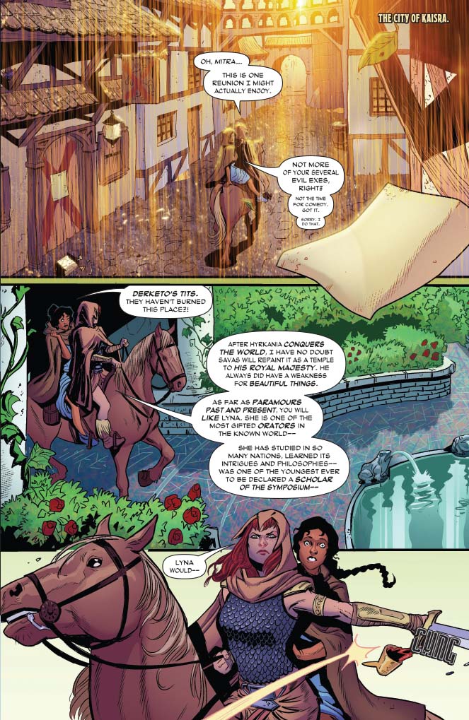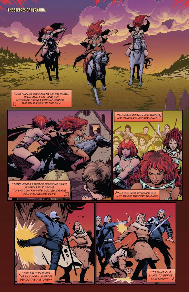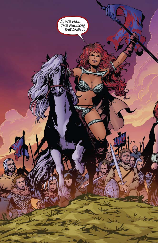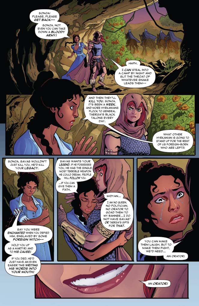 Hunted by the elite assassins of her own King, Sonja is forced to hide – even among her ex-lovers! With the aid of those from her past, she must rally a rebellion against the new despot, ending his dreams of conquest. Sonja plots a desperate gambit of her own as Hyrkania teeters on the brink of civil war!