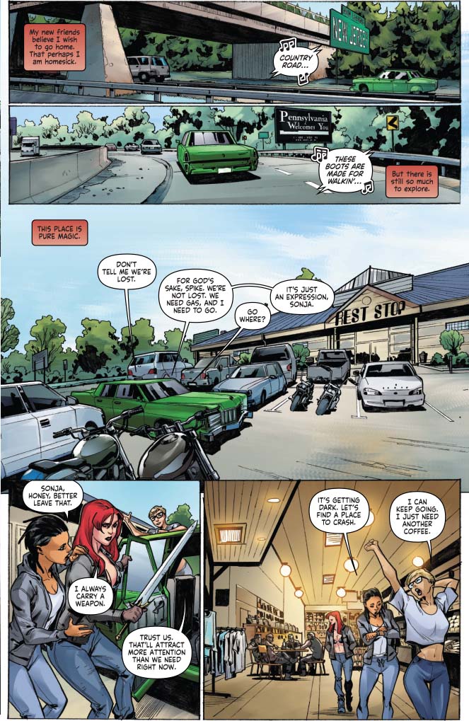 The She-Devil embarks on a whole new adventure… across America! Sonja takes a ride with Max in search of a way back home, and discovers maybe our worlds aren’t that different after all…