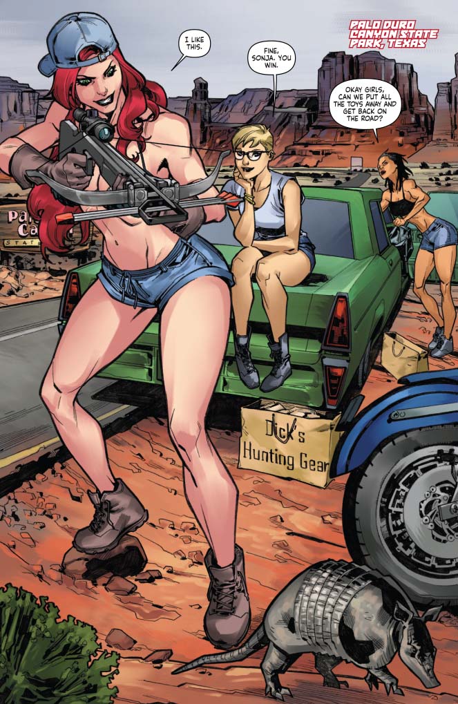 Buckle up for a wild journey as Sonja treks across America looking for a way back to Hyrkania. But as she heads further West, all she seems to find is trouble…