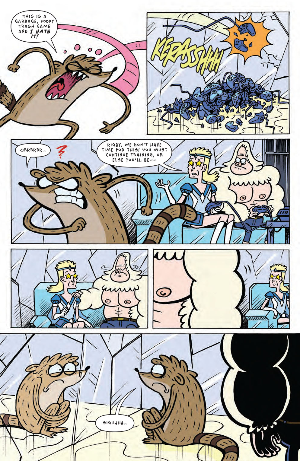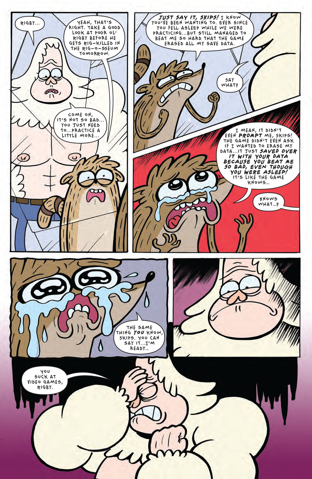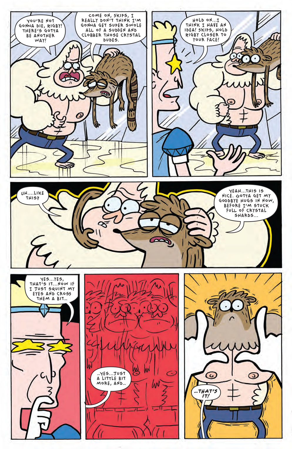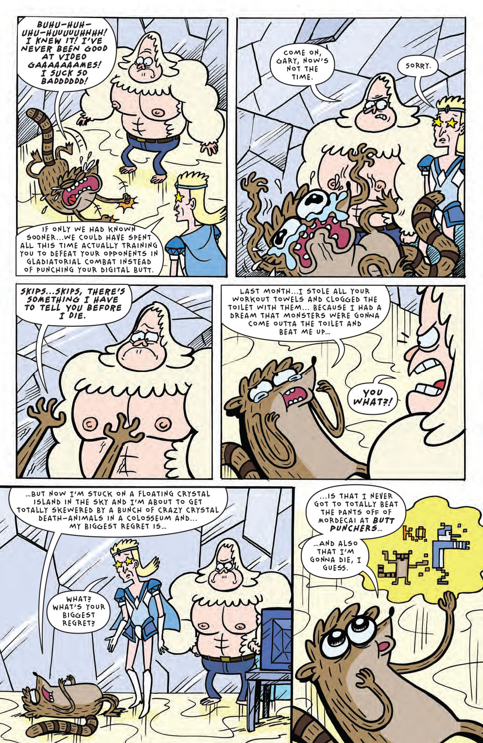 Rigby and Skips are forced to battle in the Crystal Coliseum while Benson and Mordecai struggle to find a way home from the Rainbow Palace in the clouds!