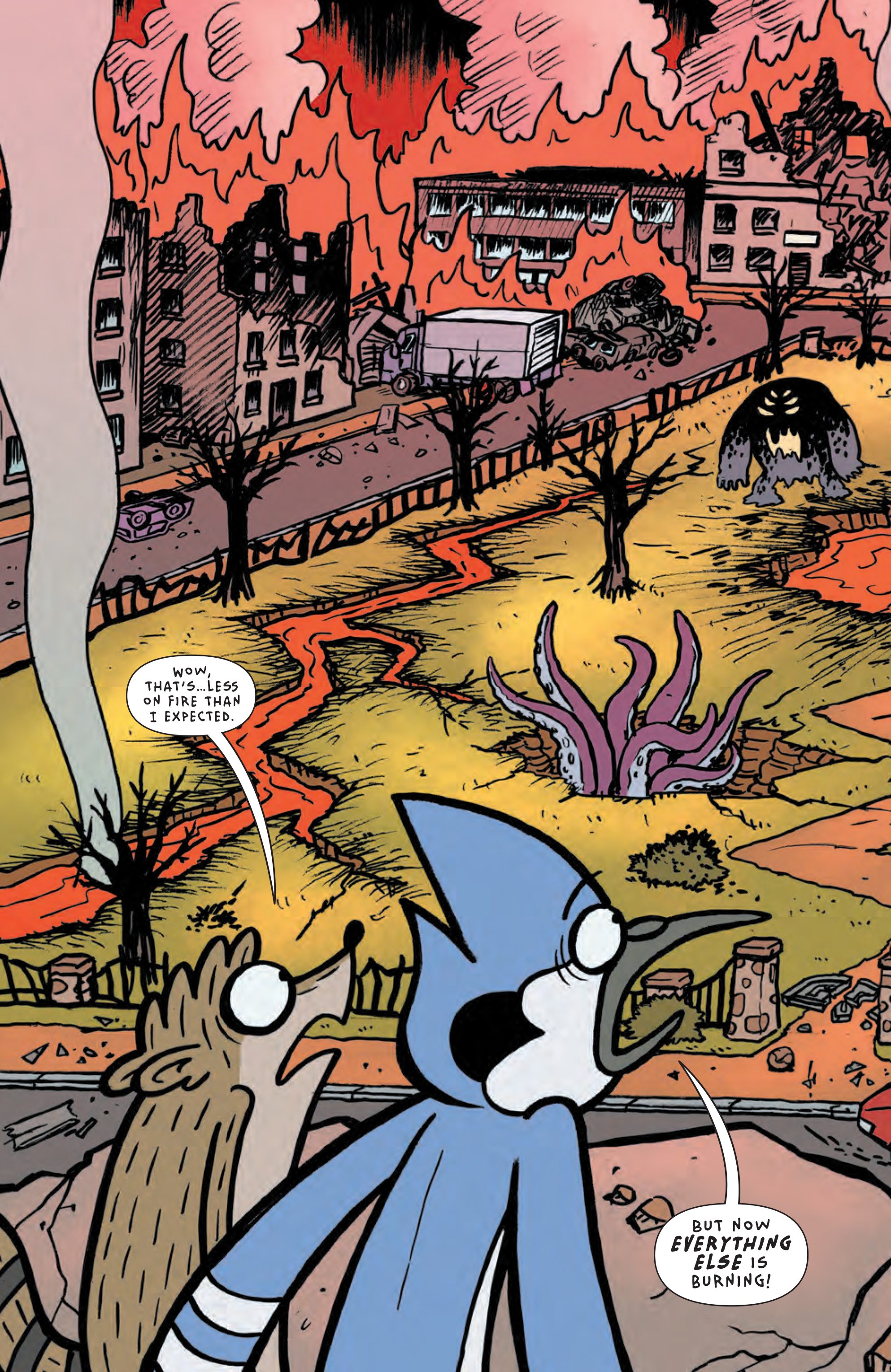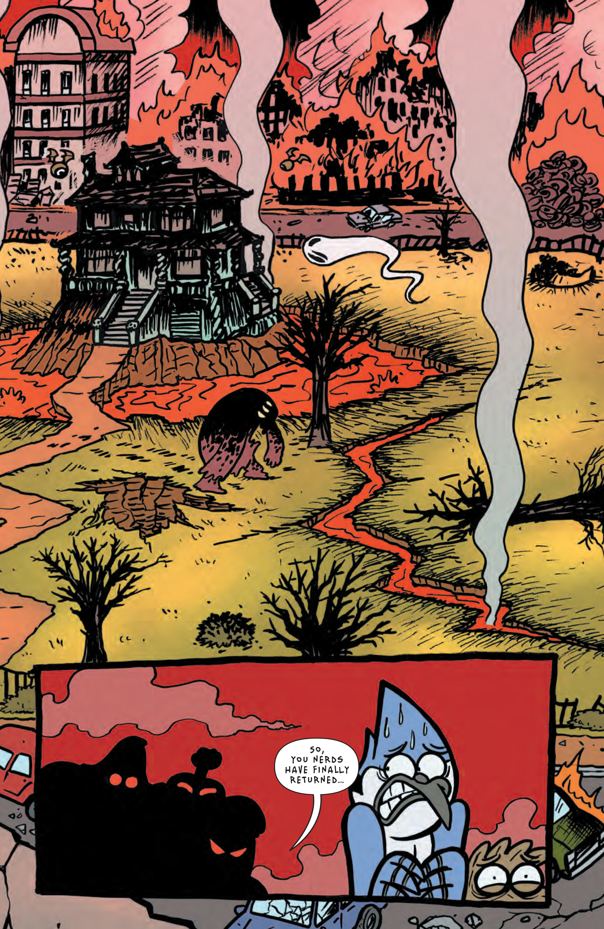 Synopsis: The Oracle of Chaos emerges from her slumber and explains to Benson that he was the one thing standing between reality and total entropy in the Park, and now that he’s gone, she has free reign. Whoops.
