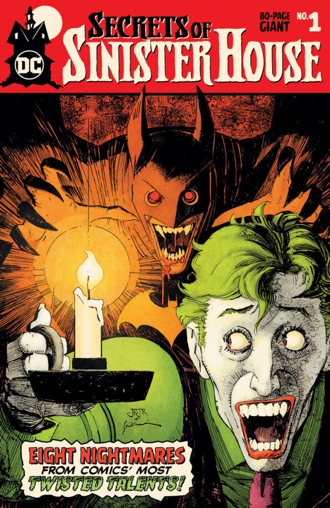 Following the smash success of 2017’s DC House of Horror #1 and 2018’s Cursed Comics Cavalcade #1, witness what hides within 2019’s Secrets of Sinister House #1—revealing the DCU’s most horrific secrets and mysteries! In this new prestige-format 80-page one-shot special featuring a cover by John Romita Jr. and Bill Sienkiewicz, travel alongside Harley Quinn, John Constantine, Detective Chimp, Zatanna, the Atom and others as they face this macabre devastation first hand! And in the bowels of this dark mansion…we return to the world of the legendary Red Rain to meet once again with the dreaded vampire Batman.