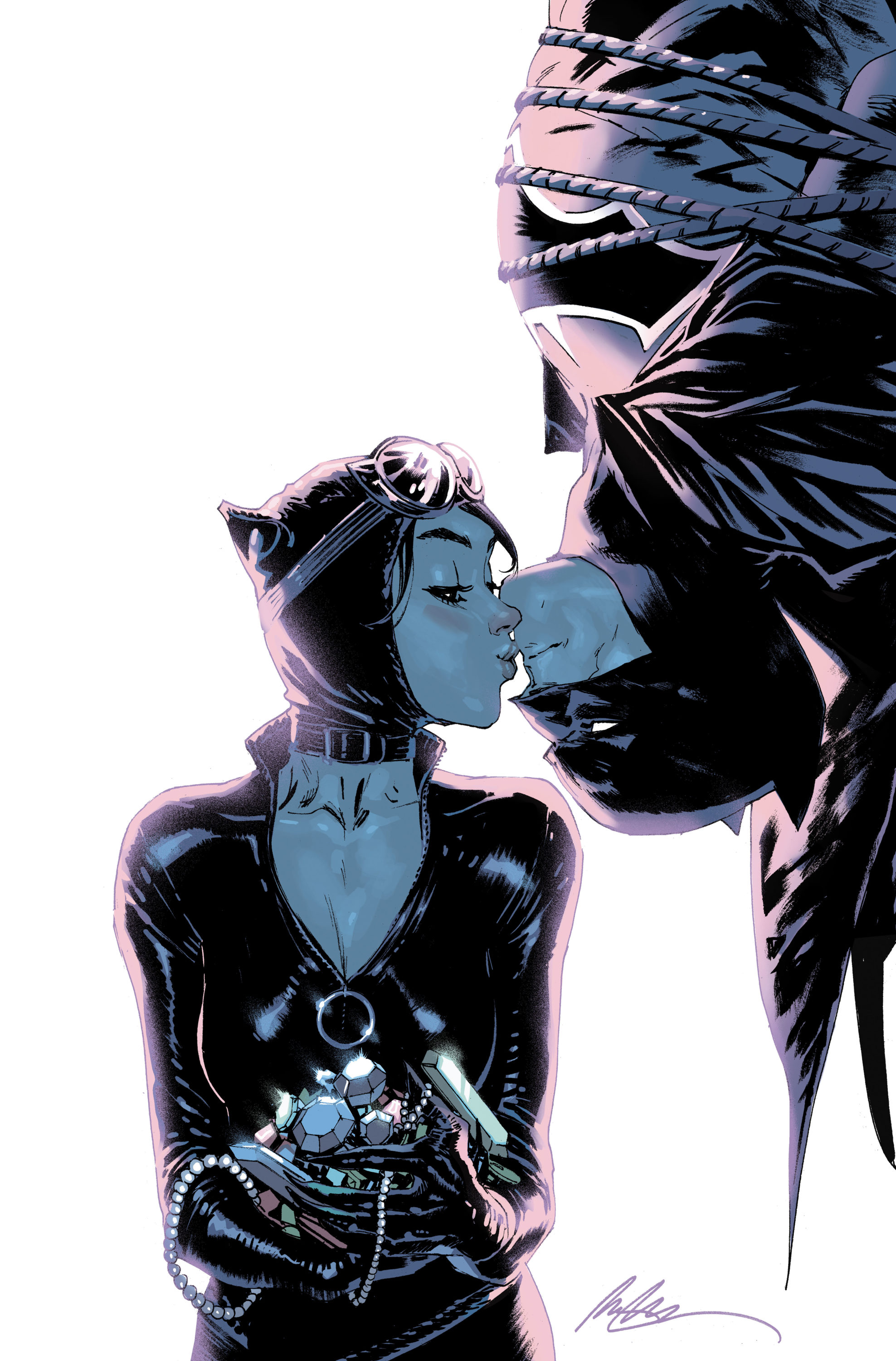 The issue features artwork chronicling the couples’ history throughout comics. The pages feature the inner thoughts Catwoman and Batman share for each other and the words are accompanied by several of DC’s artists including many who’ve helped to chronicle the pair over the years. Reading like vows at first it soon becomes clear that the words on these pages are much more than inner thoughts and declarations of love.