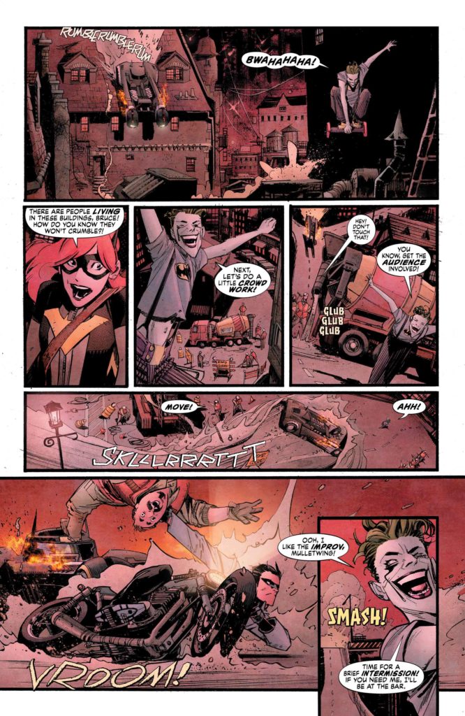 Batman: White Knight explores the Batman/Joker relationship and how their storied history has created a type of interdependence between them. The Joker carves Batman pretty good with some spot on psychoanalysis during their fight and his musings, now in a sane mind are potential landmines for the Dark Knight.