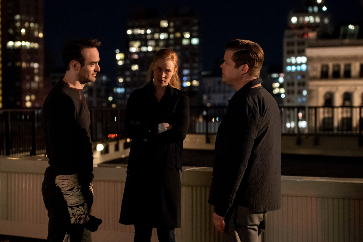 Matt’s plan to kill Fisk doesn’t go over well with Foggy. His disillusionment with the system rubs Foggy the wrong way and he fights back against his friend to find a better way to take down Fisk. Karen chimes in as the voice of reason and they all decide to work together, within the law, to achieve their goals.
