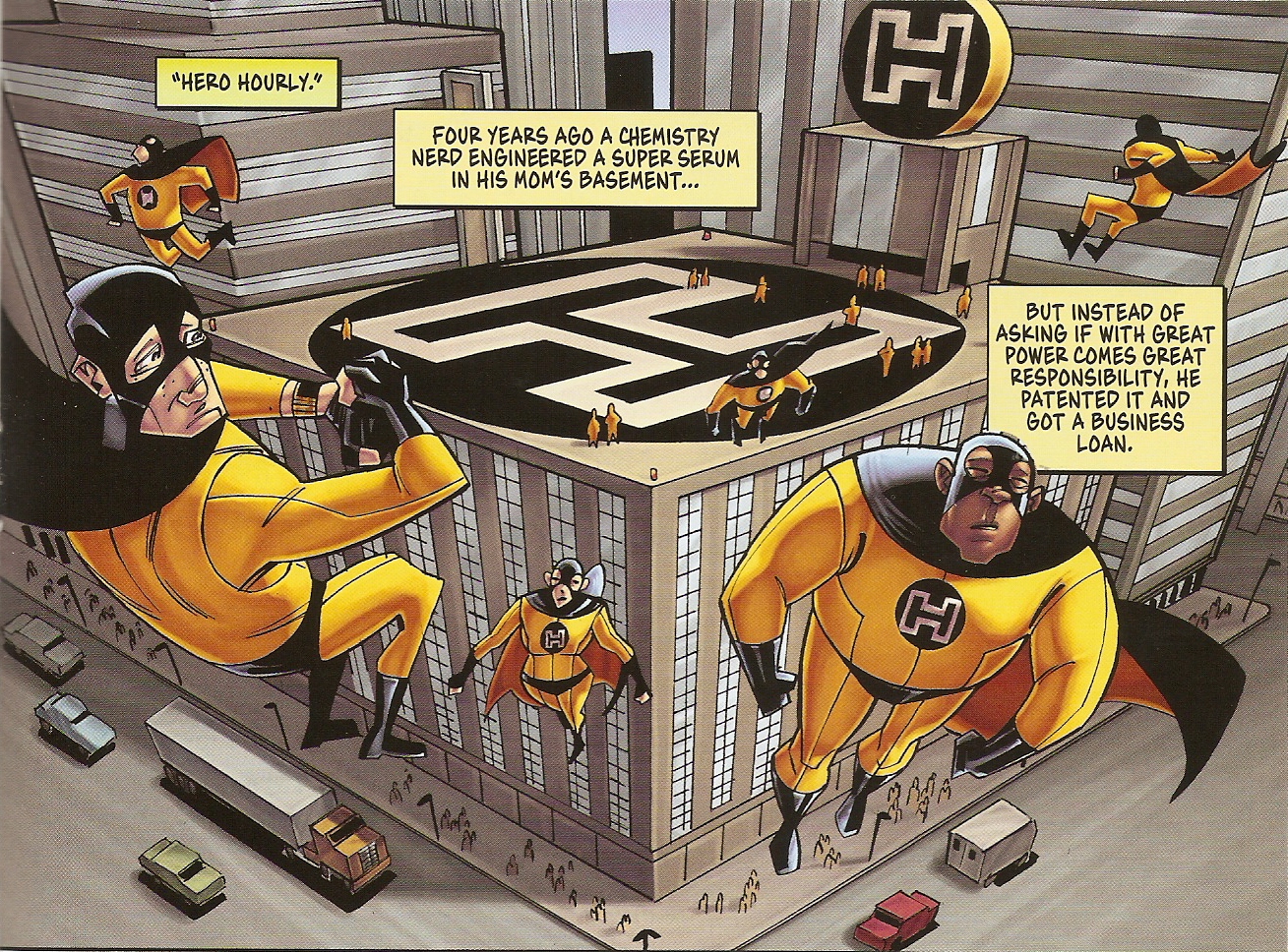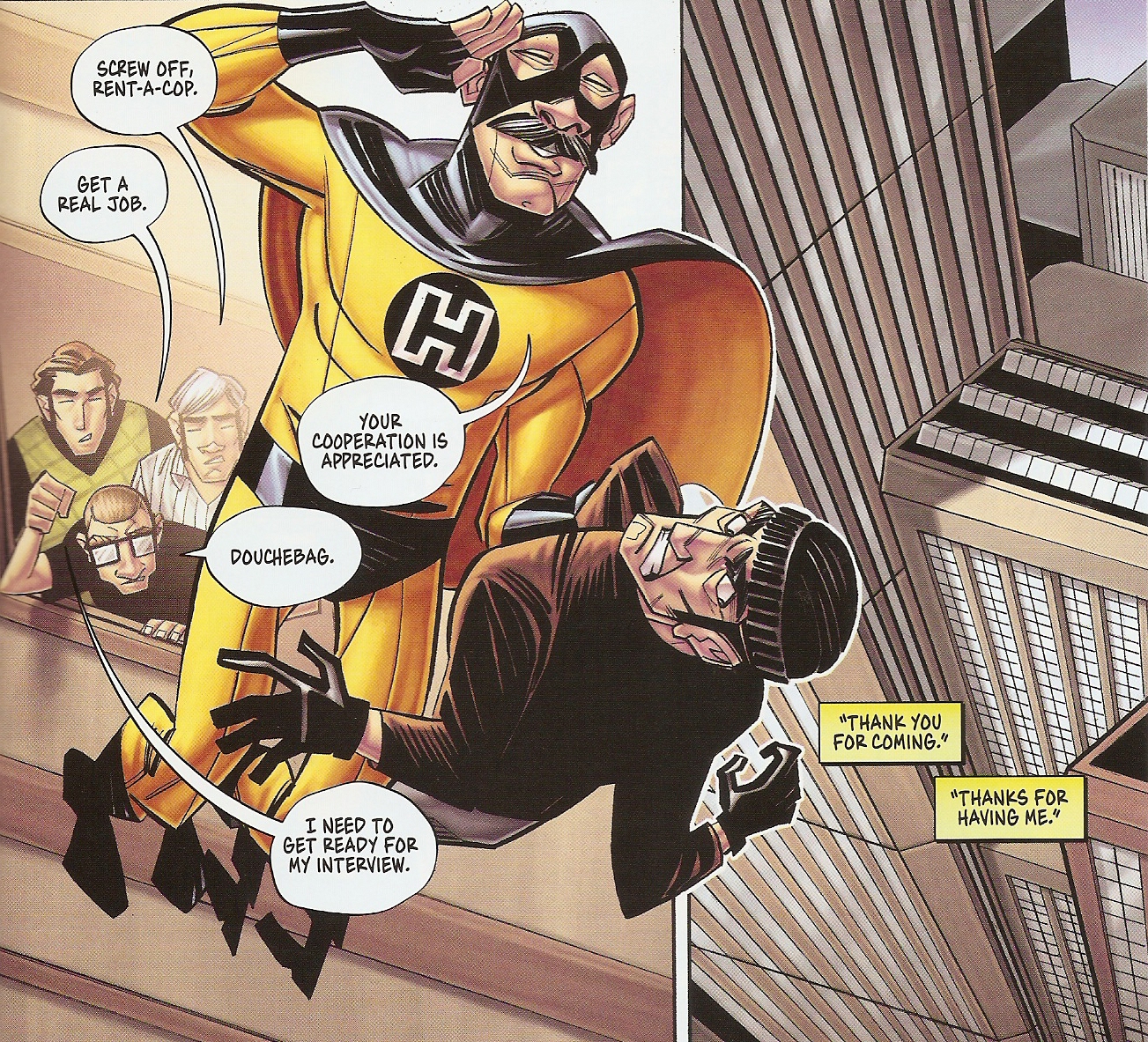Everything’s coming up roses for a guy that was washed-out. We all know that the universe has to maintain its balance. Shortly after gaining his gig, HH undergoes a corporate takeover. Gabe has been let go. The same applies to Mark. HH is now Clints. The culprit responsible is a villain going by the lame name The Foreclosure! Cue: dastardly laugh.
