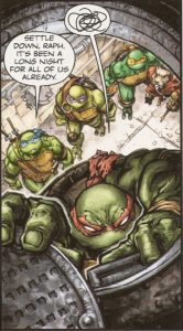 Freddie E. Williams II has a unique art style. The individual close-up of each NT is an exemplary copy of Kevin Eastman’s original concept.