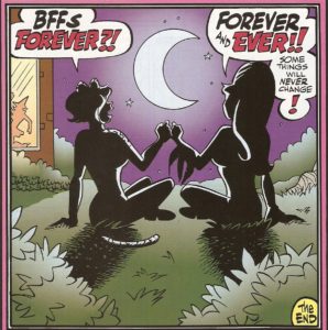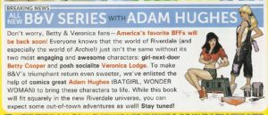 Dan Parent is everyone’s favourite uncle at Archie Comics. His creative input for the company is too numerous to mention. Suffice to say that he has kept steady hands with the entire universe. His major claim to fame and crowning achievement is the creation of Kevin Keller. It wasn’t until this very issue that I realized B&V are bona-fide friends. The few stories I read always had them at each other’s throat, thus my assumption of their frenemy status. I’m extremely satisfied that Mr. Parent had these two realize they don’t need a boy to drive a wedge in their relationship. Individually, they are independent, savvy, and strong. Together, they are unbeatable!! The characters reflect the modern times. Gone are the days when they would literally cry over rejection and unnecessary antagonism.