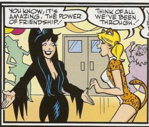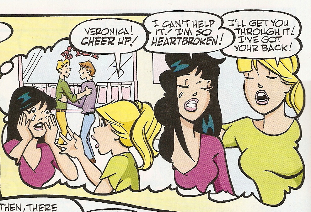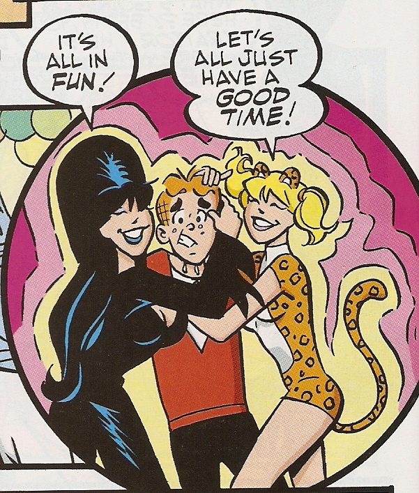 Betty and Veronica depart. They intently observe the good time experienced by the others. This is by far not the end for the diametrically opposed duo nor their friends. Their interactions will last an eternity!!