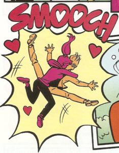 Jack Morelli uses block lettering to make each caption easily legible. The heart-filled SMOOCHes are a stroke of genius!