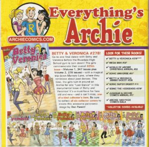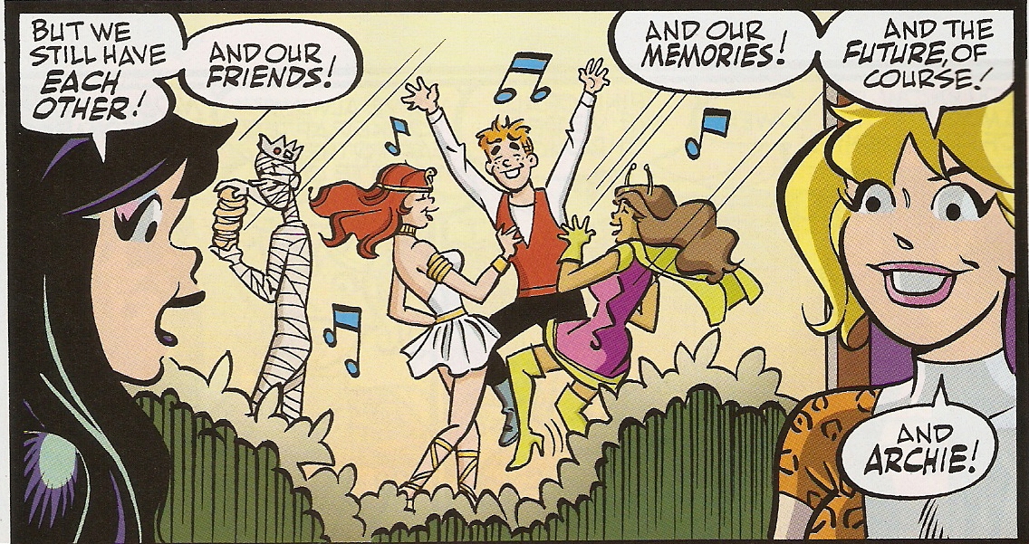 The premise is the closing of the gym in order for the cafeteria may be expanded. Veronica thinks it’s rad; Betty isn’t as gung-ho. Numerous memories were created there, specifically the dances. This has the duo reminisce about their dealings with Archie and his failed attempts at double and triple dating.