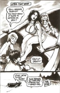 I researched everything relating to this character to gain a better understanding of things. The inspiration behind her as well as the creator’s biography are fascinating! The kicker is that Budd Root envisions his labour of love as “good girl” art. *snort* Could’ve fooled me! The gratuitous shots of flesh remain clean but the dialogue suggests otherwise ;-P