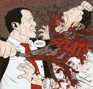 The second story has the future Umbrella Man meeting his past self. He has crossed the space-time continuum so many times his true identity is lost to him. Don’t bother fretting about two versions of the same individual being side-by-side. It can’t get more surreal and metaphysical than this! The convo gets quite heady. That is to be expected since he/they has/have traversed the tunnels of time on numerous occasions. The older version wants to educate the young. Some things never change!! Questions are half-answered or redirected. In the end, the wiser of the two kills the inexperienced one. The lack of a scar from the slash inflicted on the junior not appearing on the senior is proof enough that they are not one and the same. Or are they???