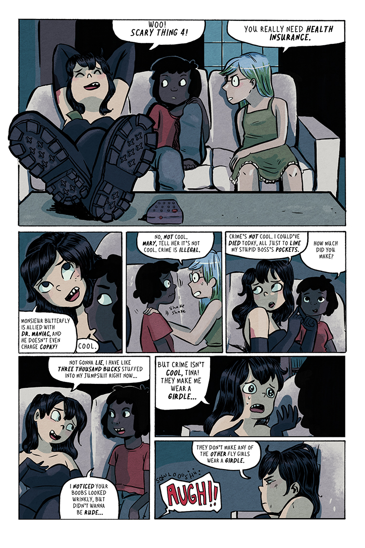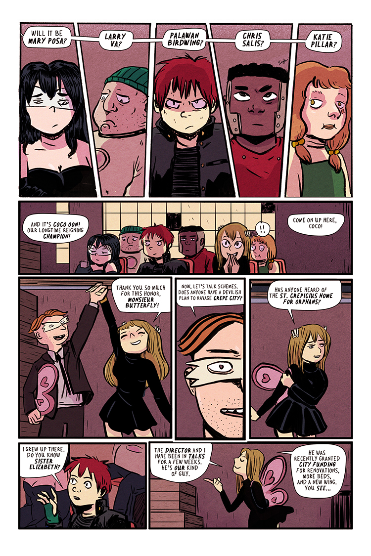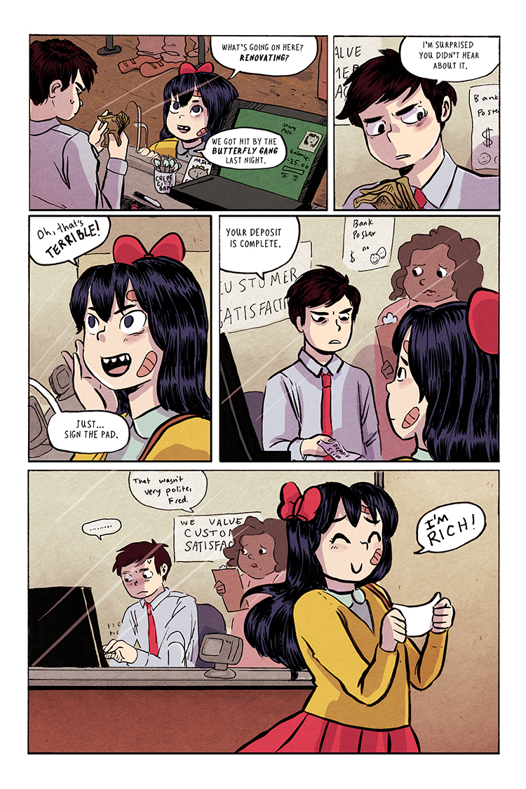 Looking for a career change? How about engaging in criminal activities? Mary Posa moonlights as a henchgirl for Crepe City’s dastardly crime boss Monsieur Butterfly. Unsurprisingly, there are very little pluses for this alternative employment compared to her day job – the pay is a little better and in her hands, she has some clout planning the schemes and heists, she succeeds at a caper through sheer luck.