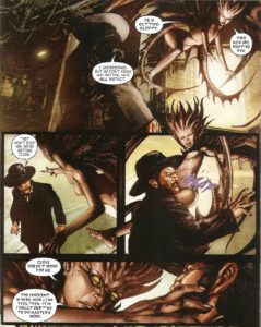 Leonardo Manco’s gritty style delivers the right tinge of horror for this title. His range is far and wide having worked on HELLBLAZER for almost four years. The creatures are his expertise. They give me goosebumps and create shivers down my spine. These unsightly individuals put circus freaks to shame. Mr. Manco’s drawings truly are the stuff of nightmares.