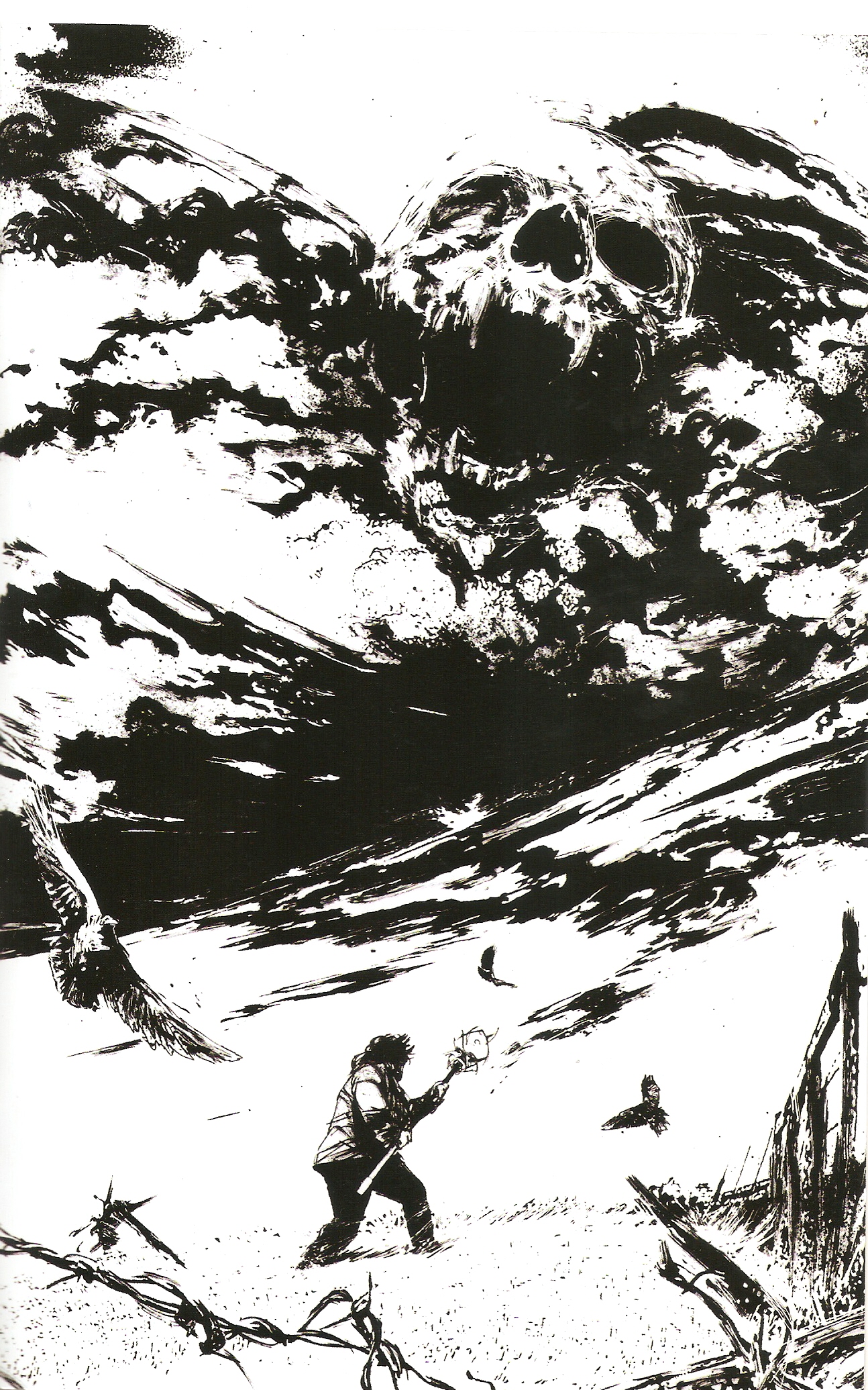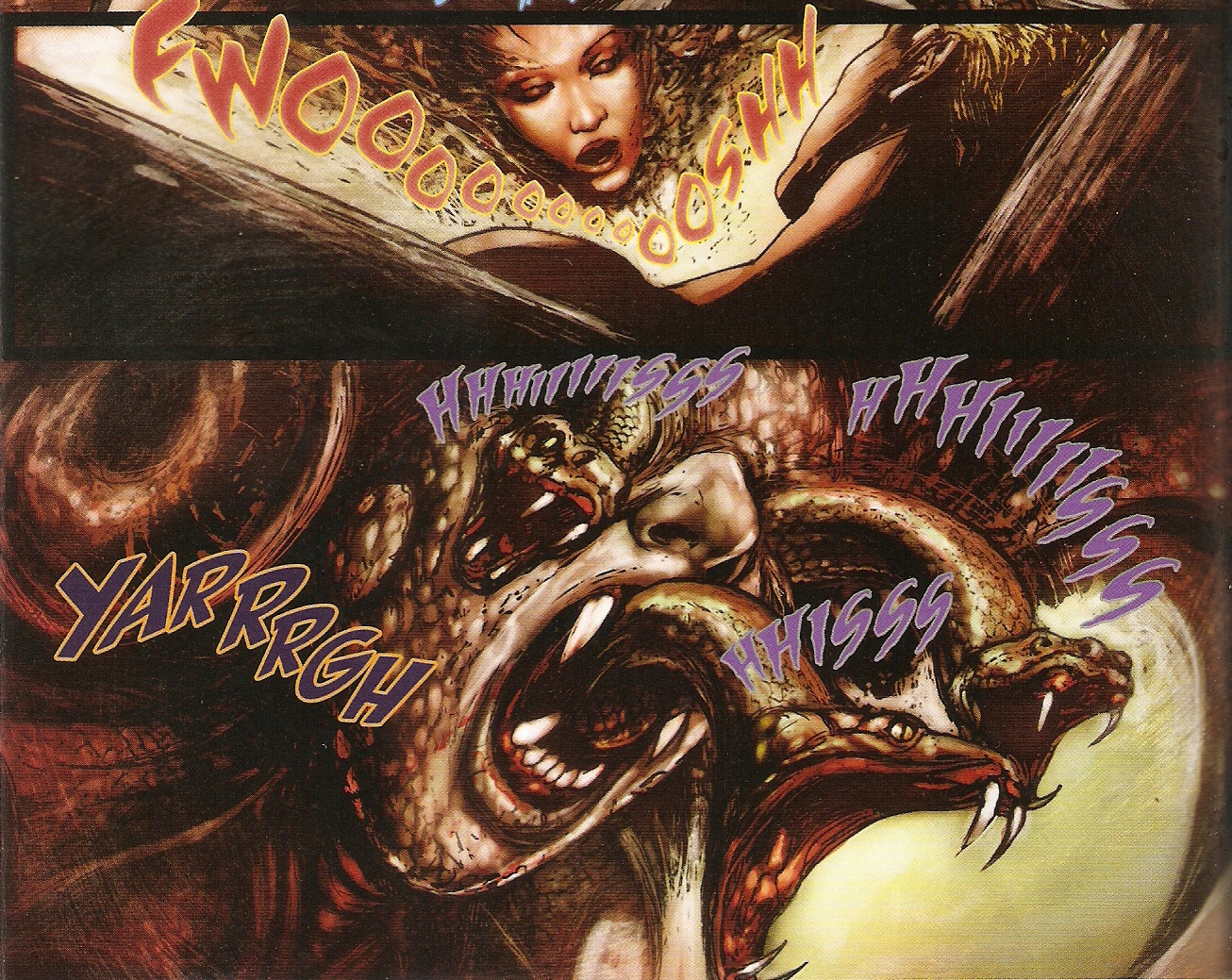 A barrage of horrifying images are found on the second page. Demons rise from the earth. Lilith burns Beckett and shows her true visage.