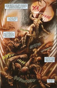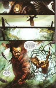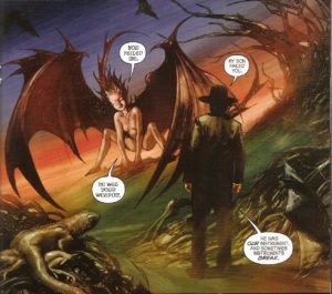 I’ve enjoyed this issue more than the previous one. I still haven’t found a way to peruse the first ten but the solution is at hand and will occur in the near future. I want clarification to the characters: the preacher man’s son – is he meant to be Lilith’s? What happened to Lilith’s own spawn? What about the misshapen child roaming about? Have Daniel and Jack been a team from the get-go? What exactly is Old King’s deal?