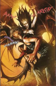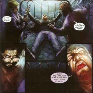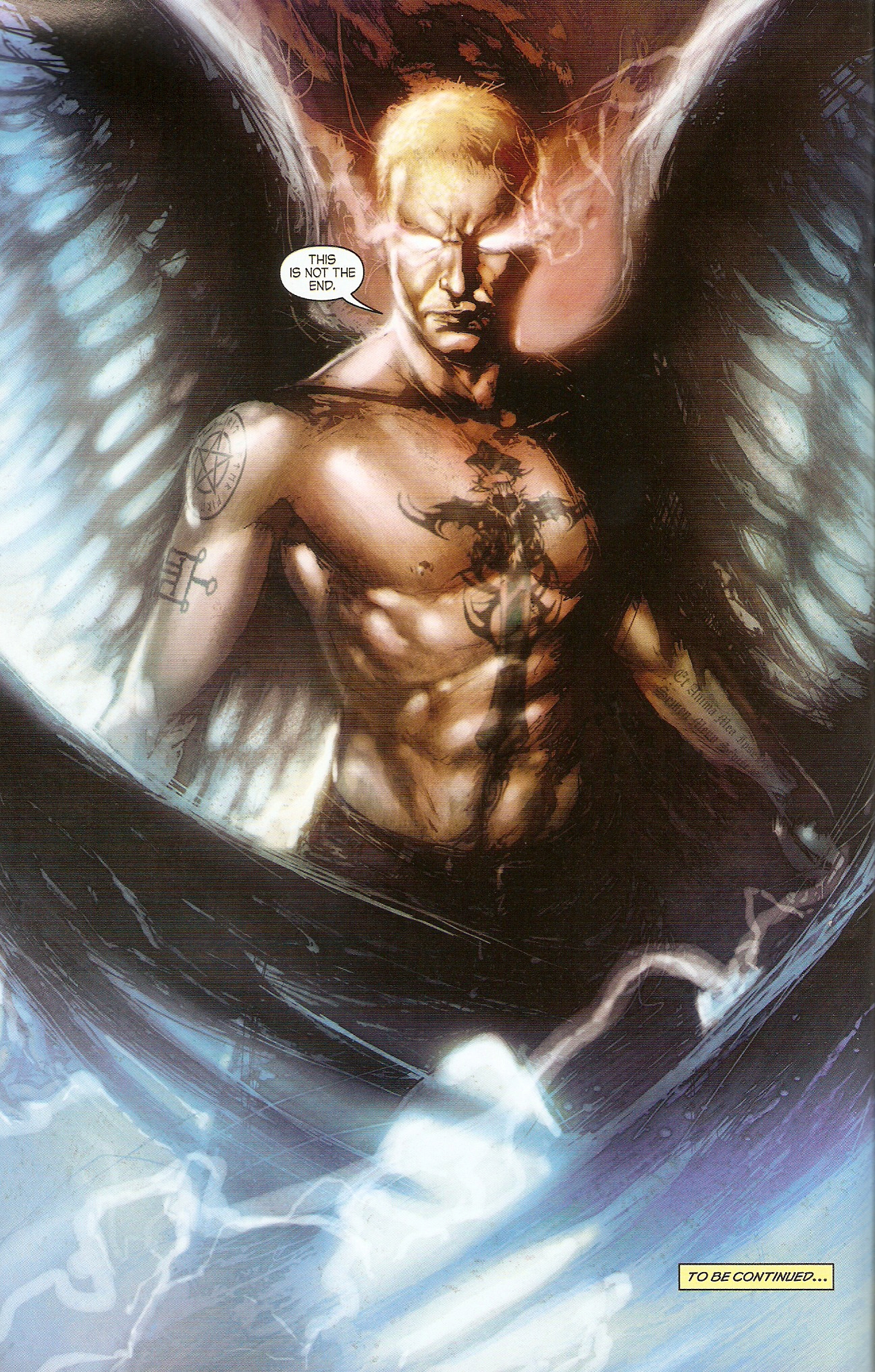 Leonardo Manco’s art is rich, textured, and all-around astounding!! Every panel is enthralling. The full pages are gorgeous. The men he draws are hot!!! Pun intended!! My eyes can never get enough of Daniel’s angelic appearance. As twisted as this sounds, the Anti-Christ got my heart racing ;-P Don’t stop!! Draw more of Daniel as he truly is meant to be. I’m sure it’s no coincidence that Daniel resembles one of Mr. Manco’s long-established ‘friends’: John Constantine.