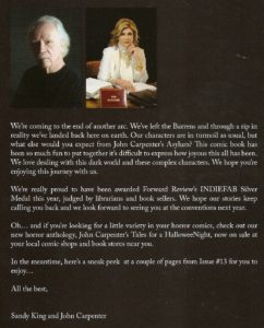 I am in this for the long haul. I promised Ms. King that I would continue to examine all upcoming issues. This is the conclusion to the current arc. That matters little since the canvas is far and wide.