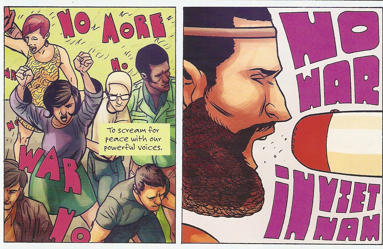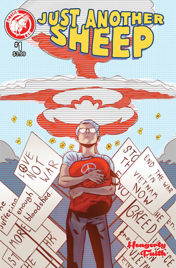 JUST ANOTHER SHEEP #1 blamJUST ANOTHER SHEEP #1 voicing against VietnamThe 1960’s paved the way for significant changes in American history. Even though I’m a Gen-X’er, I am definitely no ‘love child’ culled into this dazzling decade. The story itself has promise but I believe the art doesn’t really reflect this odd era. I give this book 6 out of 10.