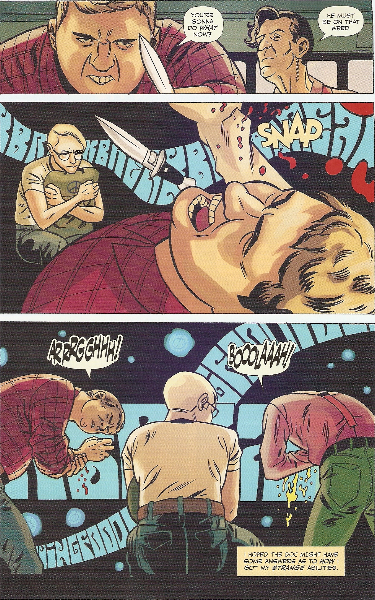 JUST ANOTHER SHEEP #1 extraIt’s a good thing I re-read this issue. I’ll shamefully admit that I wasn’t really paying that much attention to the narration boxes. I focused on the dialogue and ignored the other info since I assumed it to be Banning lamenting his unidealistic existence. The last page was a payoff in that respect. It’s a no-brainer [no pun intended] that Banning has his own back thanks to his meta-human abilities but to be embroiled in something secretive and scandalous has increased the interest factor!!