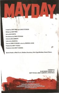 Black Mask Studios is relatively a toddler in the comic book publishing pantheon. In their short lifespan of three years, they have met critical and sales success with titles like GODKILLER, WE CAN NEVER GO HOME, SPACE RIDERS, The DISCIPLES, and this very title. I will correct myself. They are also a studio in the truest sense!! There’s a TV adaptation of FIVE GHOSTS in the works as well as an animated trilogy lined up for GODKILLER. The metafiction in this last entry is entirely applicable!! The company is run by a triumvirate: Steve Niles (of 30 DAYS of NIGHT fame), Brett Gurewitz (from the music group Bad Religion), and Matt Pizzolo who has his named dropped, coincidentally! I find fascinating the transition from film to comics. I now refer to Mr. PIzzolo who has dabbled in directing and playwrighting. He now has a hand in producing funny books. This is the second time in two days that cinema carries over to comics! My eyes are agape at Mr. Gurewitz’s new hobby. I learn something new every single day!! Mr. Pizzolo is given props for pushing transmedia. Neato, mosquito!! Now I know and that is half the battle 😉 OOOOHHHH, looking at BMS’ site, I see that they have formed a partnership with Tim Kring, the creator of HEROES, to make MAYDAY a TV series. No bloody way :0 I’m in like sin ;-P