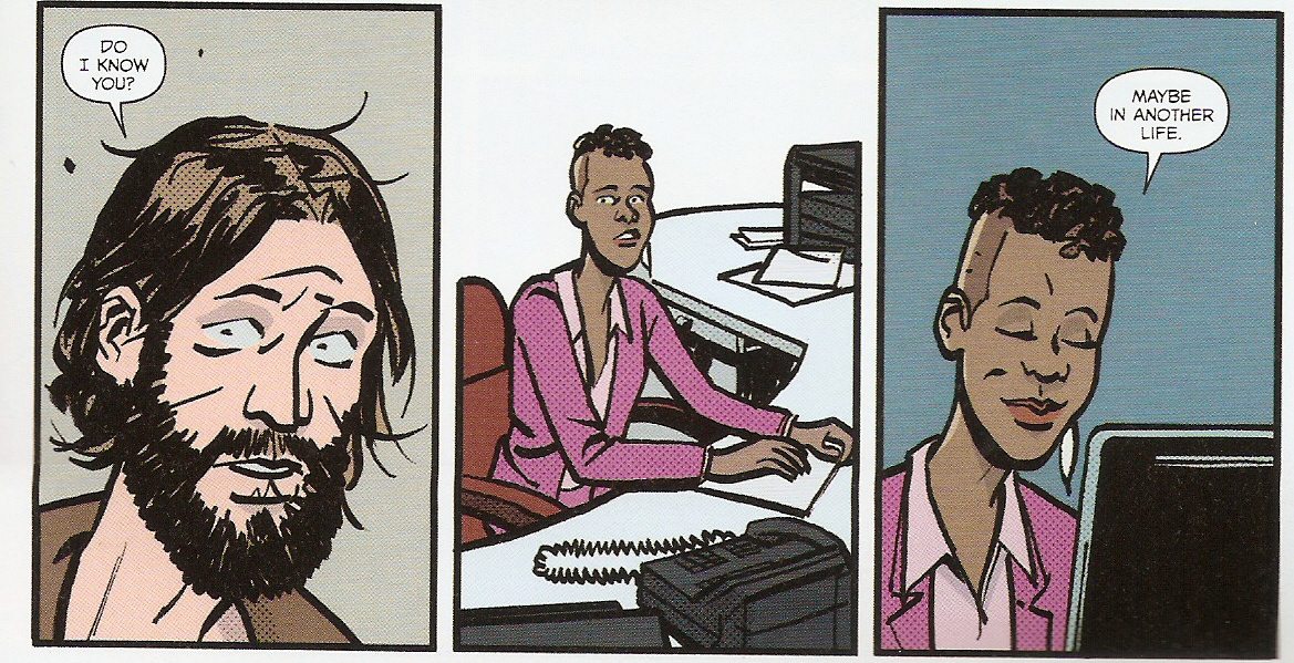 He makes a beeline for Black Mask Studios to speak with the head honcho. He is so gung-ho that he’s only sporting a blazer, boxer-briefs, and slippers. Kloie also actually exists :0 She is the receptionist for the company. He seeks an urgent audience with Matt Pizzolo. Terry looks at Kloie and thinks he recognizes her. She is coy in her response.