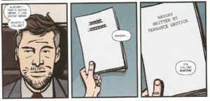 I could produce a massive paper on the rationalization and deconstruction of creating fiction and world-building but I will be concise. I will let the scanned panels speak for me. Literally!! I enjoyed the multiple layers of meaning. I compare this to INCEPTION where the more you descend, the harder it is to ascend. One needs a stable tether to what is deemed reality otherwise there are garbled images that lead to inanity (and insanity). The technique of the story-within-a-story-within-a-story is a main fixture in writing. It works really well in this final issue. The point is to interpret the events in your own way – Was it all a dream? Did Terry become too immersed in his imagination? Were we sucked in to a literary labyrinth? The choice is yours!!