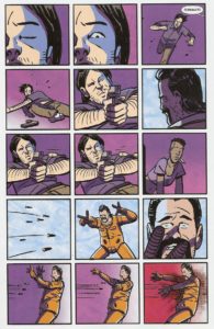 Alex Diotto is practically a babe in the woods. I mean that in the most respectful way. He has exhausted his pencils for Action Lab, Comixtribe, Grayhaven, Outré Press, and Titan. WHOA! His style is similar to David Aja. James Dean resembles a more mature and developed Archie. The many faces of Terrance show his various states of mind and stages in life. Kloie is a big black mama and someone I look up to. The best sequence is the walk towards civilization since it’s a one point perspective.