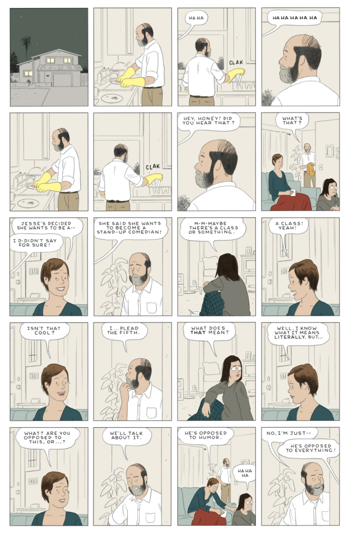 The number one rule in telling a joke is to never explain the punch line. It ruins the delivery and undoes the entire thing. I’m not necessarily going to do that but I will point out the puns in the title. One can slay a group of people via laughter. The French say it best: MDR — mort de rire which literally translates as “dead/dying of/from laughing/laughter”. Us Anglos opt for LOL. At any rate, a most serious topic is sneakily inserted into this not-so-funny tale. Mom is a helicopter parent. This is reflective of a society where placing 17th in any competition grants you a major reward and copious amounts of praise. There’s a fine line between enabling and pointing out realistic goals. This is up for debate. Obliviousness can only get you so far. As I previously mentioned, I failed to observe Mom’s condition until after her death. If that was your intent, Mr. Tomine, you succeeded. Bravo! Not to pat myself on the back, but I’m glad I’m very thorough and always re-examine things.