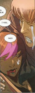 The two scribes effectively execute the downward spiral the teens are experiencing. Their ally Ayo holds her own until she shuffles off this mortal coil. The boys have been put through the wringer! Thus, it is surprising (or not) that they readily head off with their new foster father and accept him despite his creepiness. They should have followed their instincts. REM has taken over the body of the dirty old man and has brought them to his domain.