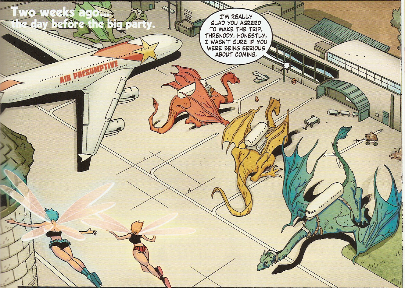 David Hahn extends the hyperbole through the facial expressions. Everyone plays it up to the extreme. The dragons are cute and cuddly. One could create an activist group over their use as aircraft.