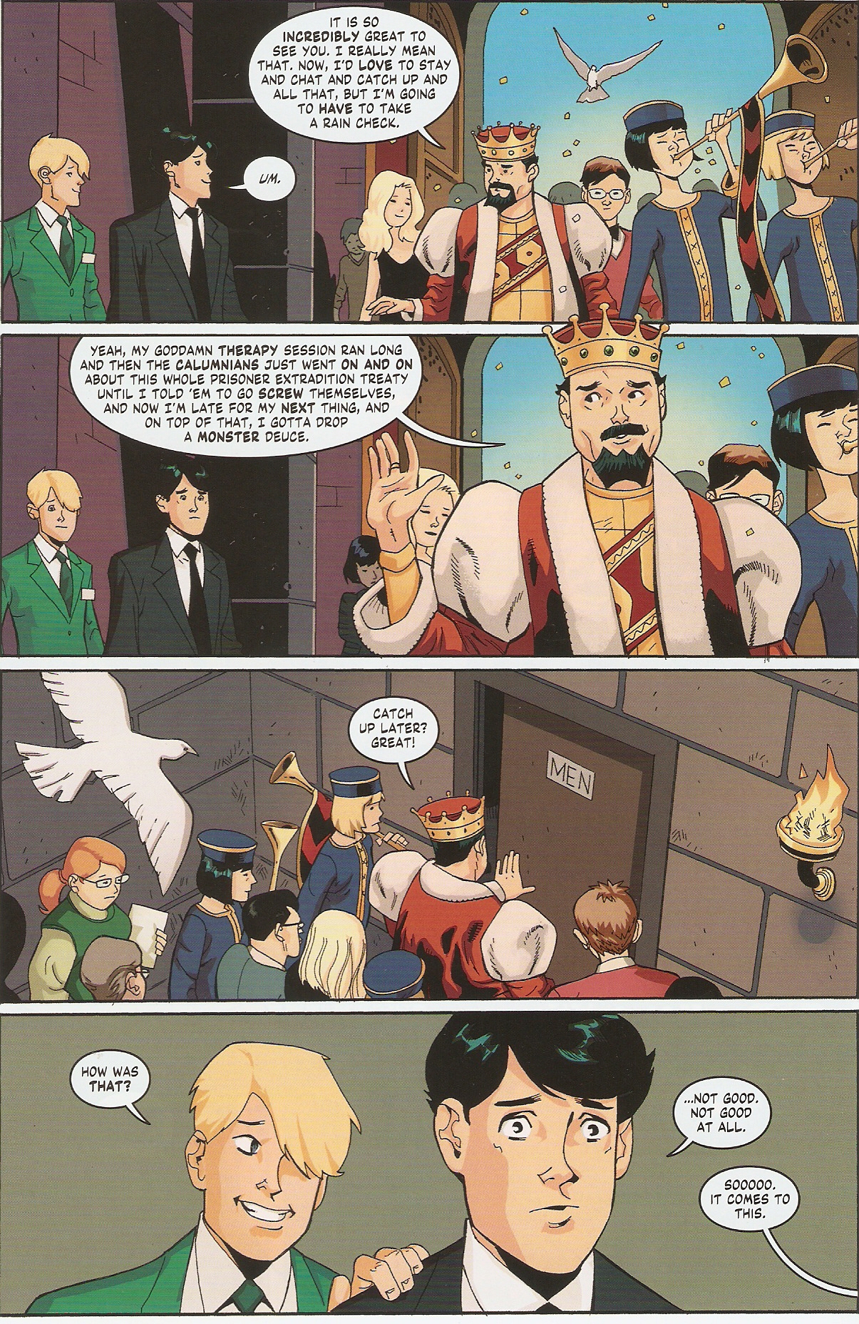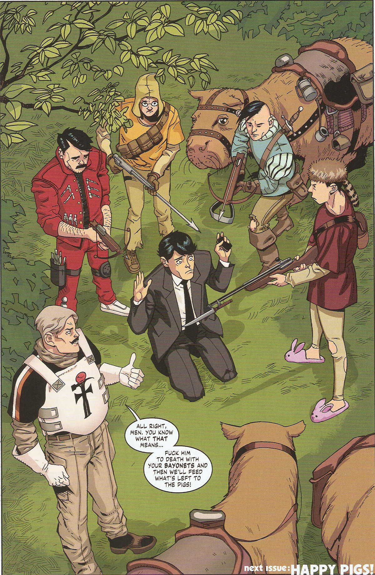 Dave Justus is well-versed in fantasy and horror having written FABLES: WOLF AMONG US and one issue of HOUSE OF MYSTERY with his new co-writer Matthew Sturges!! E for Effort in terms of shifting gears by putting a more comedic slant in this series. I know satire when I see it and I realize there are far more developments to be made but the dialogue was drawn-out and the narration was grimace-worthy.