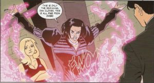 Dan’s evil brother who is news to him comes out of nowhere, just because. He is also a sorcerer dabbling in the dark arts. I’ll theorize that the creative team wants to poke fun at the absurdity of fiction but I’m not buying it.