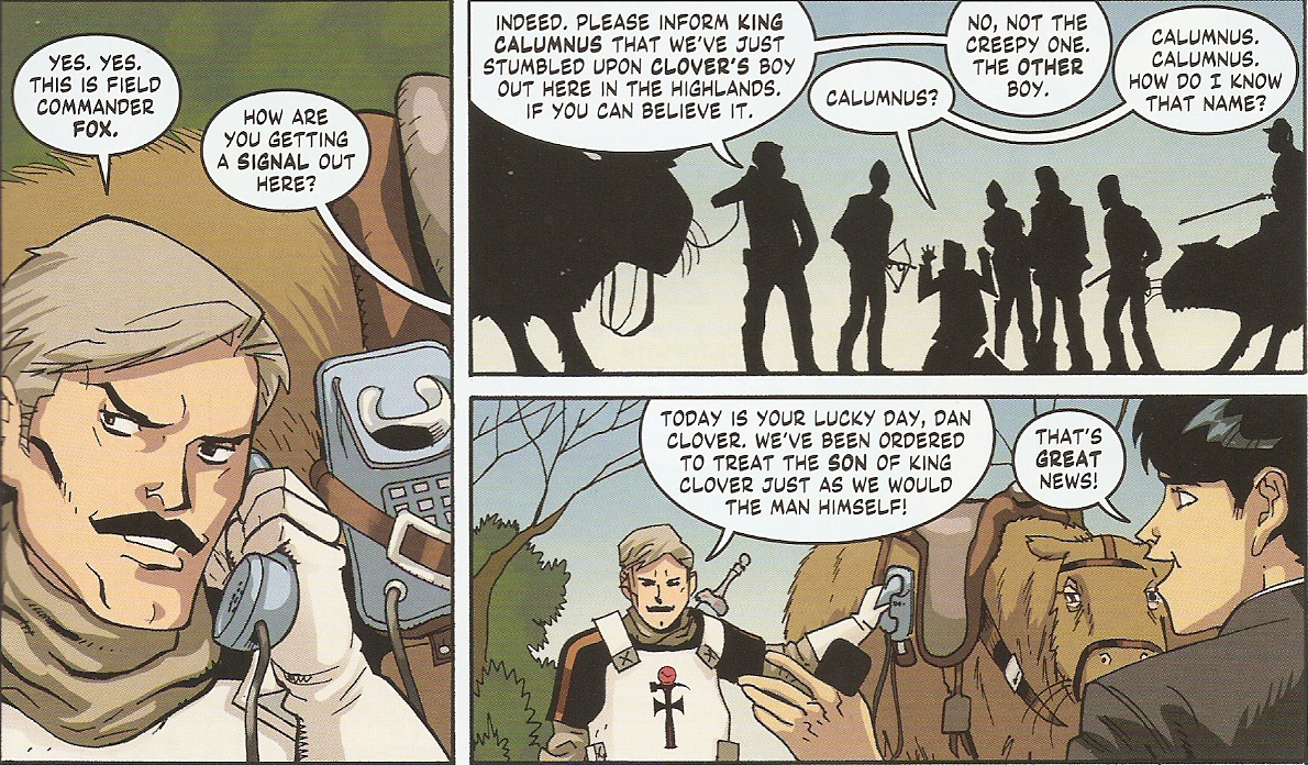 King Clover is either buffoonish or crafty. The point of the matter is the monarch Calumnus is about to wage war with them. The first salvo is holding hostage the good son Dan.