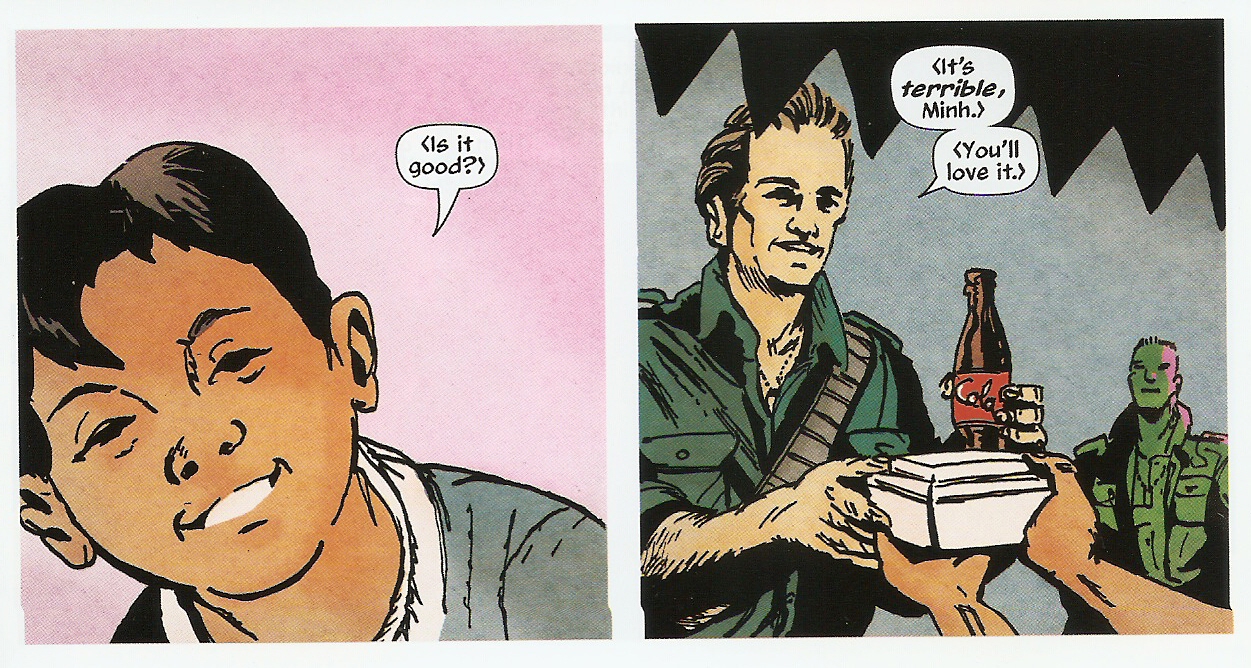 I never cared much for war as a genre in any medium but I have made exceptions to that dislike with M*A*S*H, Saving Private Ryan, Marvel’s Agent Carter and DC’s Sgt. Rock to name a few. What I find off-putting is that most stories always focus on the infamous WWII. I’ve asked myself as well as family, friends, students, colleagues, and acquaintances: “What about WWI, the Korean War, the American Civil War, the Hundred Years War, the Vietnam War…?” BAM!! There you go! Finally, a portrayal of two decades’ worth of bloodshed and strife on the other side of the world!! Despite American presence interference, the true victims were the Vietnamese from both sides of the divided country.