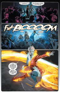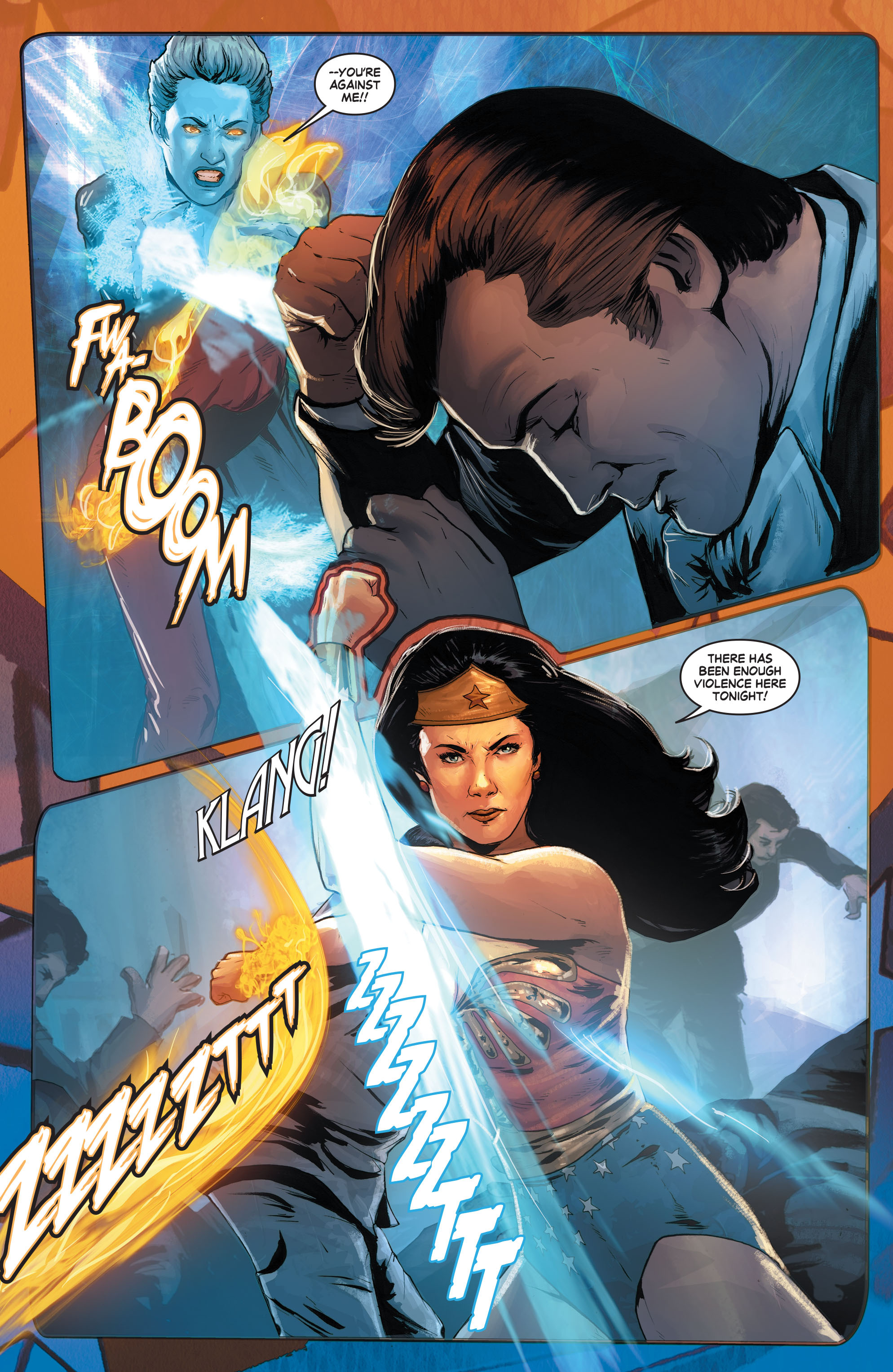 A new player hits the stage: a young woman so hot and cold that the terms extend beyond her temperament. This metahuman targets corrupt corporate big-wigs and high-standing politicians acting as a vigilante. Steve and Diana are invited to stake out the fundraiser to re-elect the Senator of Ohio. The bait is set and the powered persecutor took it! She is Celsia, ready to dispense her dual version of justice. She is successful at snatching the Senator. Wondy’s bracelets are something real special: this time around they deflect the absolute zero as well as fiery blasts. WW gives hot [pun intended!] pursuit. A three-way battle takes place when the Atomic Knights are summoned!!! One of them has a change of heart when the trio is ordered to take down the two women. Celsia’s origin is revealed. The repentant Knight was smart enough to videotape her story and it was used as evidence against the three men who did her wrong. She accepts her prison sentence as atonement while the others await trial.