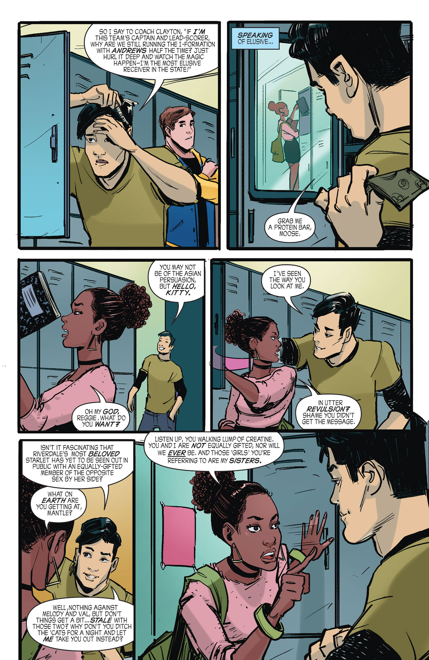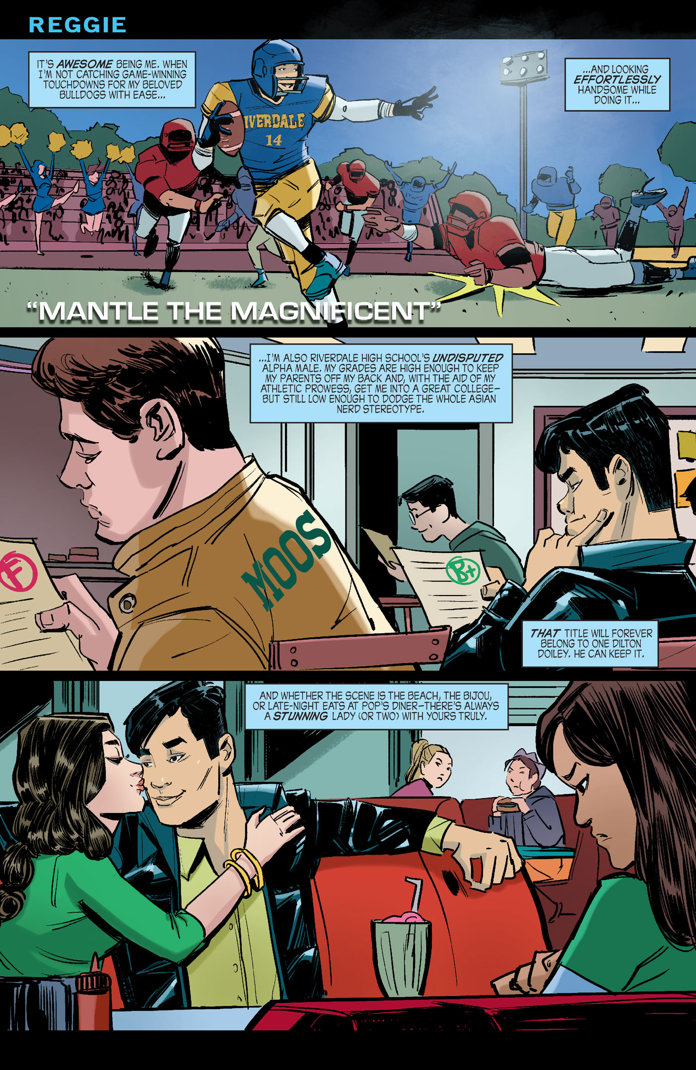 Set in the same universe as the hit CW series, this issue gives us a peek into what makes Riverdale High hot-shots Reggie Mantle and Josie McCoy tick. Reggie’s used to getting what he wants, and sets his romantic sights on the lead singer of the Pussycats. But when Josie turns him down, just how far will Reggie go to convince her he’s worth an audition?
