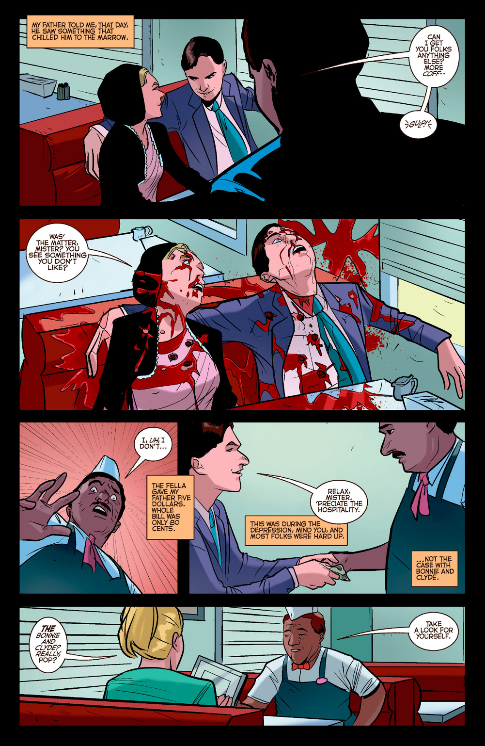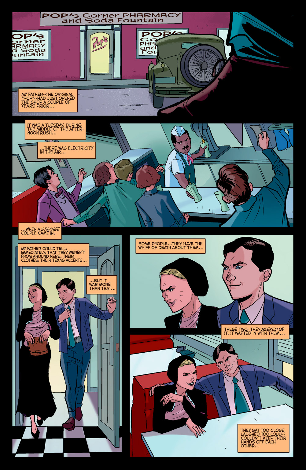 Set in the same universe as the hit CW series, this issue gives us a peek into all the secrets Pop Tate overhears in his day-to-day business, told through four vignettes in four different booths!