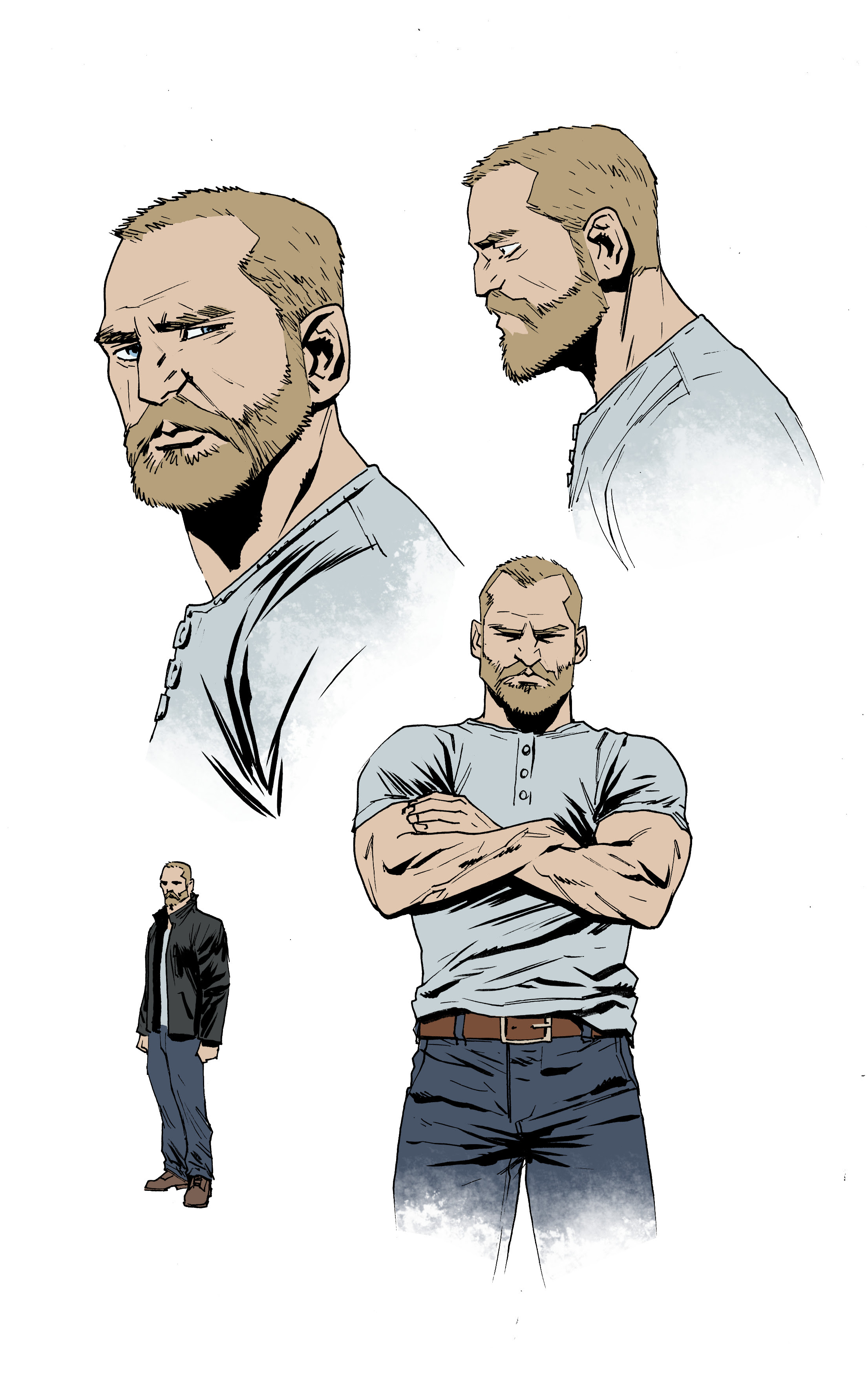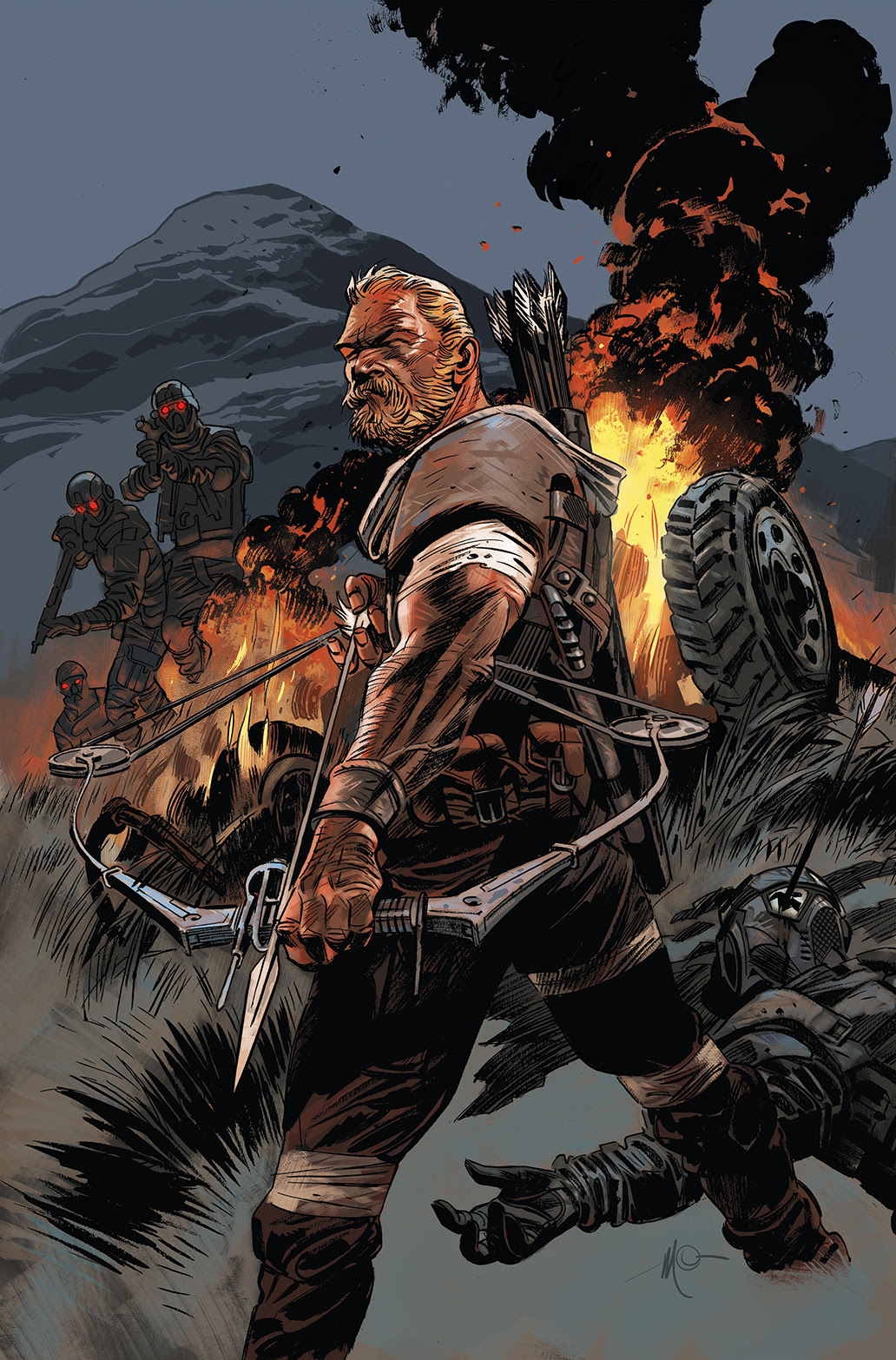 The cover to Warlords of Appalachia #1 by Massimo Carnevale (Aliens: Defiance) is below, along with character designs by Scharf.