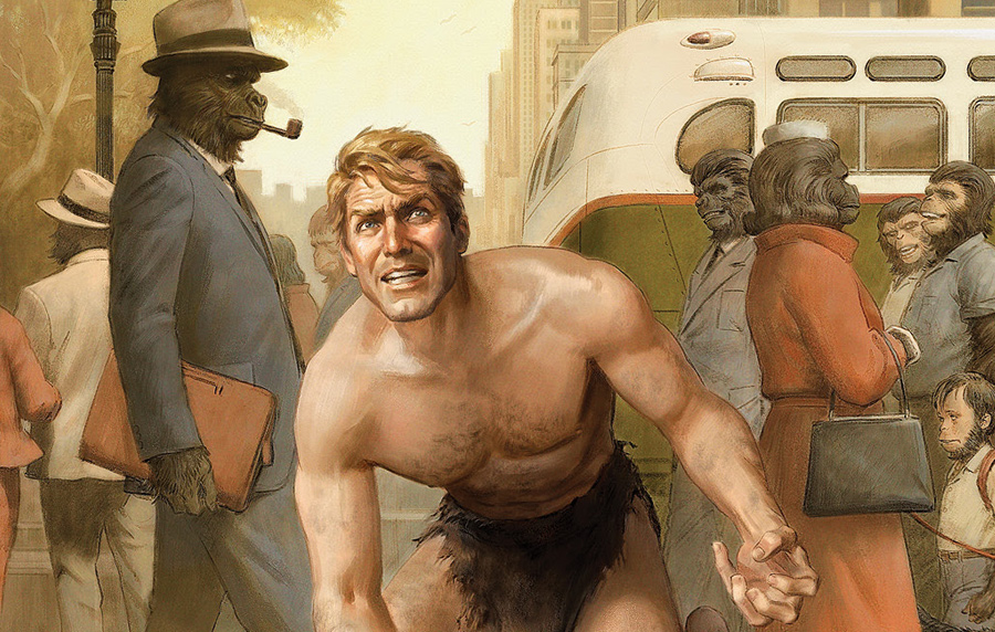 This is the world you know from the acclaimed Planet of the Apes film series, but with key differences – Taylor is Thomas, and Ape City isn’t a crude, primitive grouping of huts; instead, it’s a bustling and urbane metropolis filled with cars and skyscrapers and a vibrant Ape culture. In a world where Apes wear modern clothes, drive modern cars and rule the late night talk show scene, the arrival of one man will forever change how Apes – and Humans – view themselves.