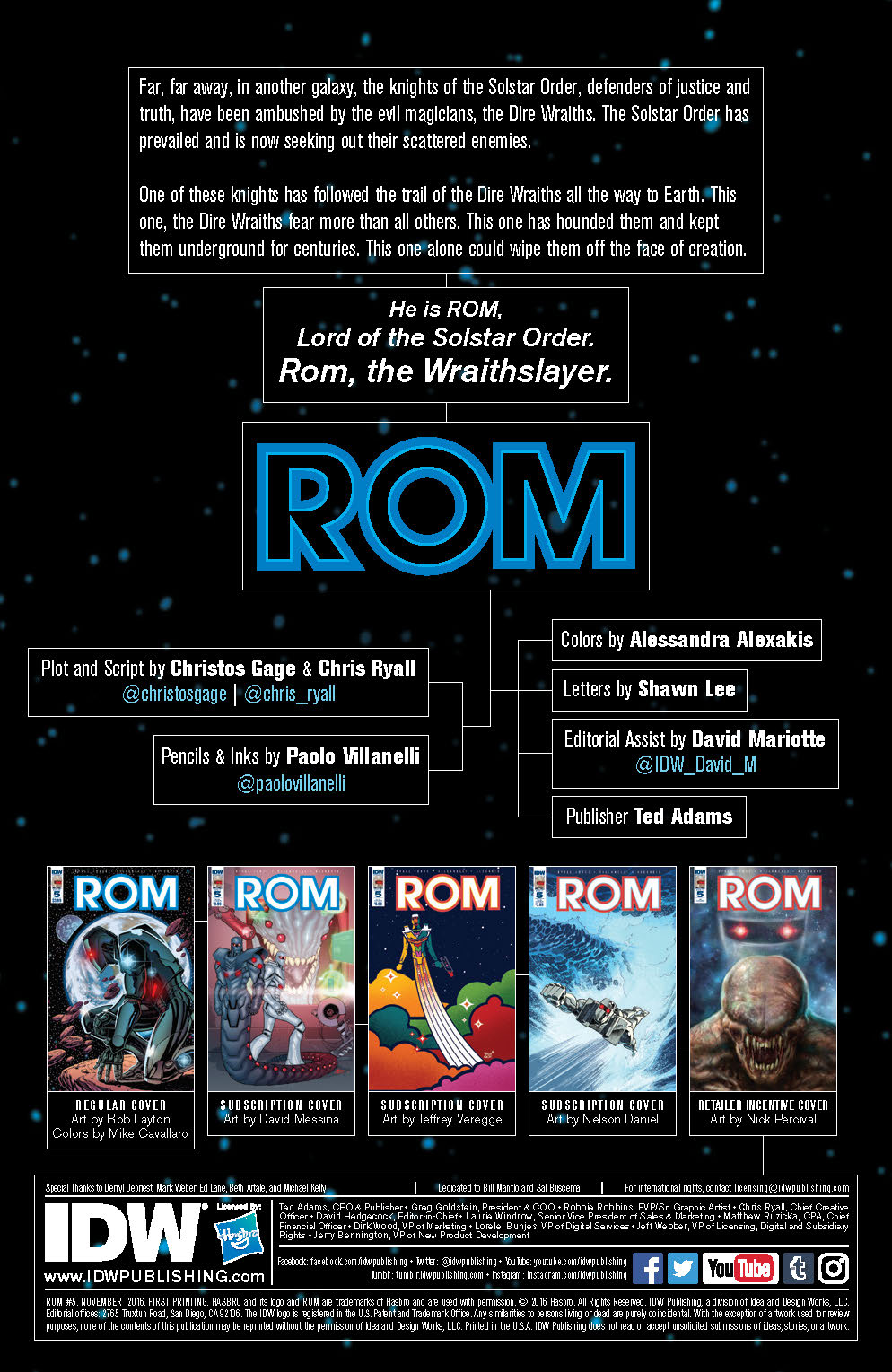The Revolution is ended. Rom is more alone than ever in his fight against the Dire Wraiths? Or is he? Introducing two armored faces very familiar to Rom… but whose side are they on?