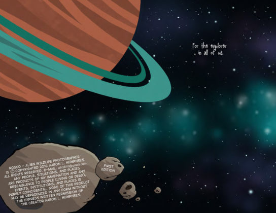 Creator Aaron Humphries comments, “I want my book to spark people’s imagination about all the astonishing places we could explore in the Cosmos and beyond.” He continues, “As a child I loved books that let me explore the possibilities of the universe, either through science or imagination. This book is what I would have adored as a child and bugged my parents to read to me every night.”