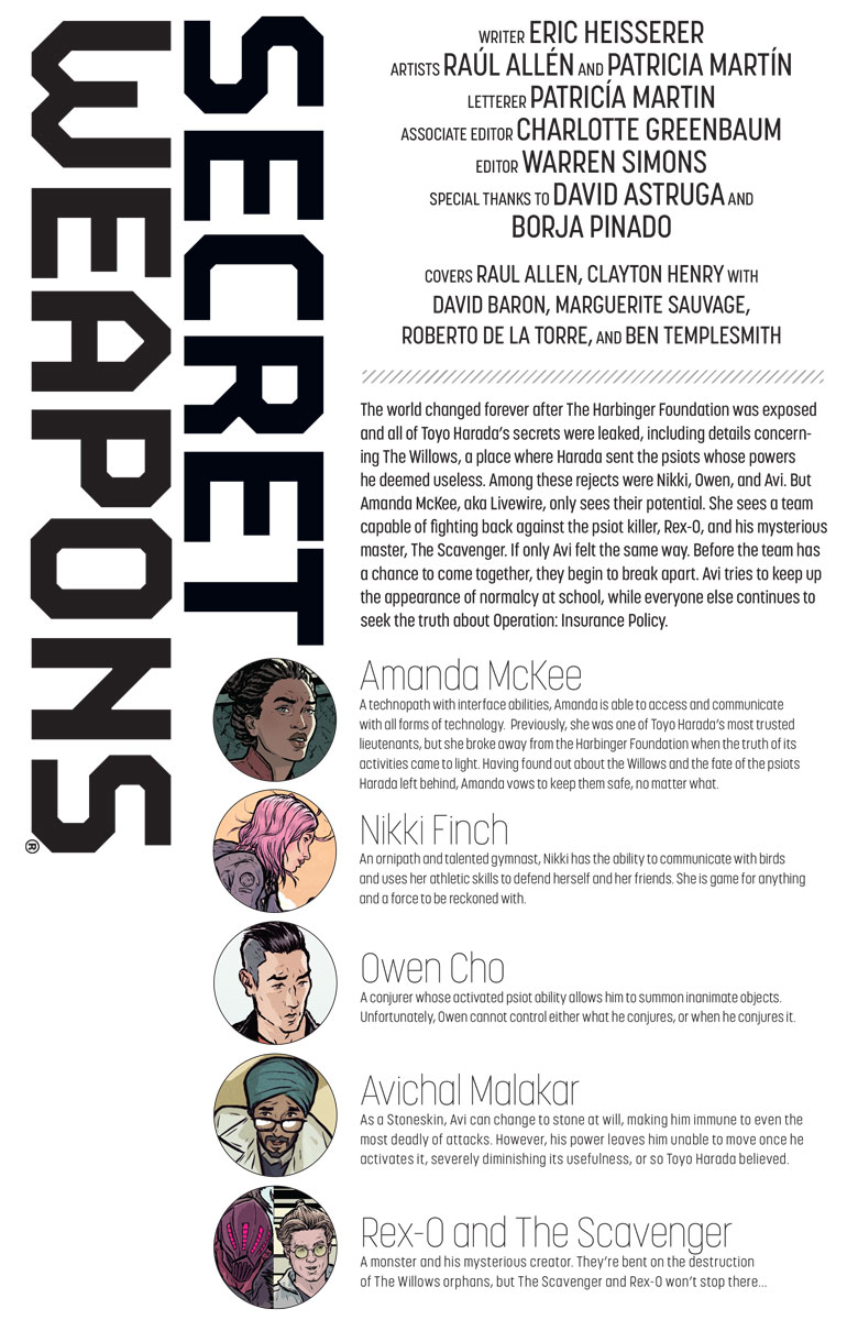 Academy Award-nominated writer Eric Heisserer (ARRIVAL) and Harvey Award-nominated artists Raúl Allén (WRATH OF THE ETERNAL WARRIOR) and Patricia Martin (NINJAK) take the summer’s most talked-about new series to the next level – and bring the Secret Weapons into the light of day as Valiant’s smash-hit new series faces its penultimate test!