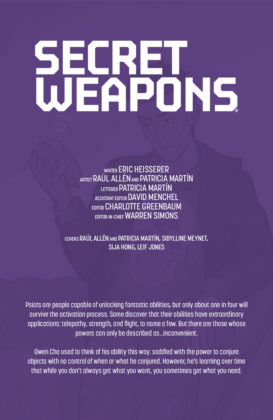 On May 2nd, the complete SECRET WEAPONS creative team reunites for an all-new, standalone tale spotlighting a day in the all-too-complicated life of Owen Cho, one of Livewire’s new recruits and quite possibly the Secret Weapons’ most unique talent of all!