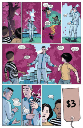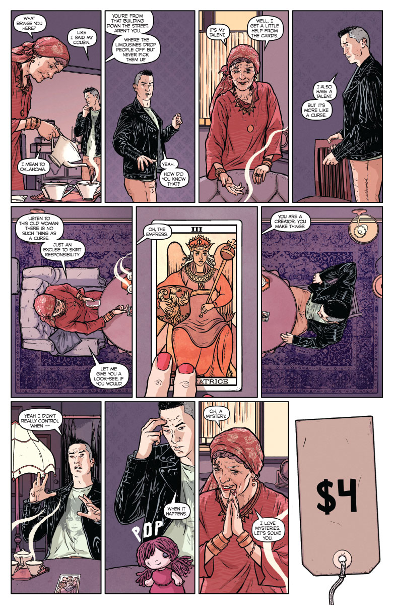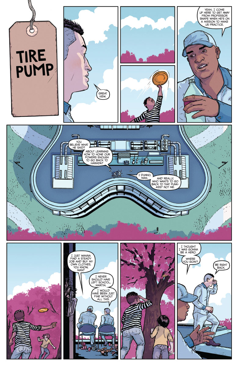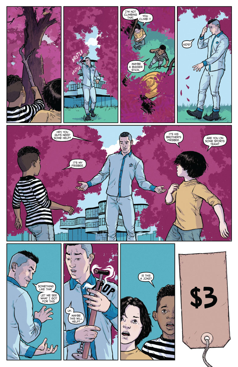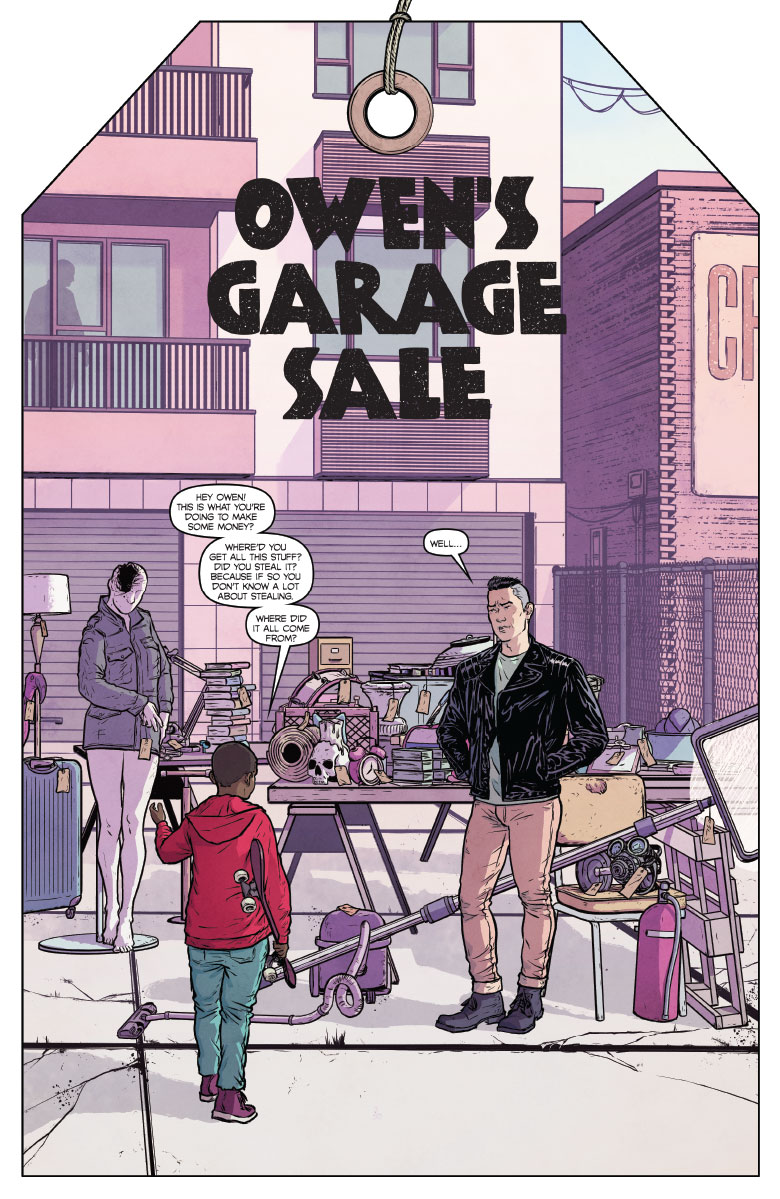 Owen Cho is a conjurer, which can be a great deal more frustrating than it sounds. You see, Owen’s “psiot” ability – unlocked at great expense and even greater danger by Toyo Harada’s Harbinger Foundation – allows him to materialize objects out of thin air, but he can’t control what to summon or when it might arrive. Worse yet, his gift has landed him in a heap of trouble over the years… Namely, it got him locked away in The Willows – an off-the-grid facility for abstruse superhumans like himself – before Livewire and her team of like-minded “secret weapons” gave him a path with purpose…But what do you do with a heap of undesirable objects summoned from parts unknown, anyway? Have a garage sale, of course!