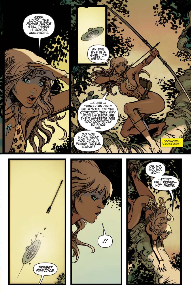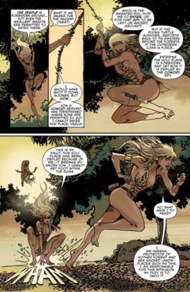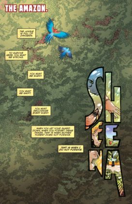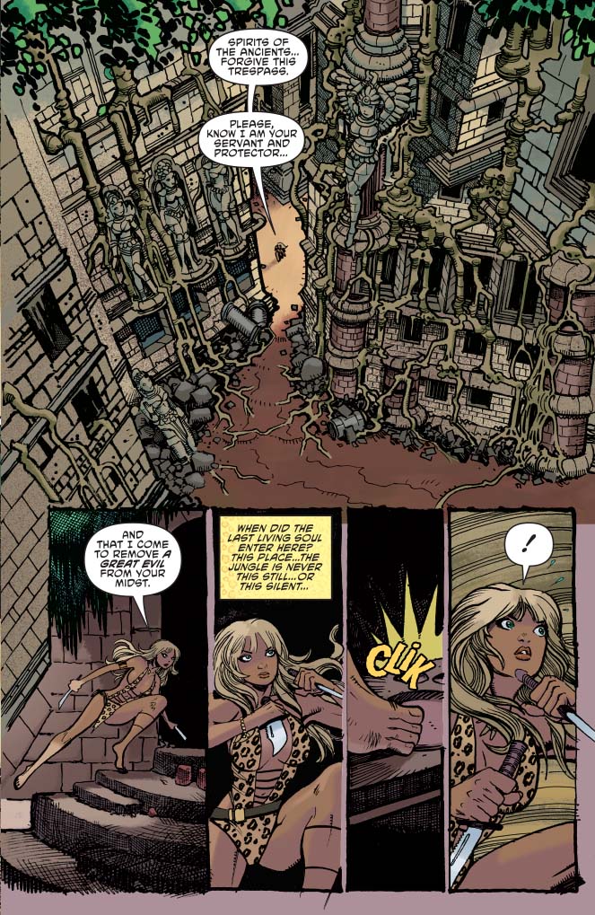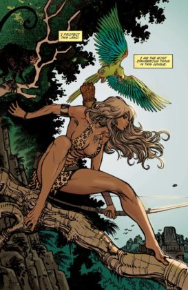 In this riveting relaunch, the guardian of the jungle, SHEENA, pursues a mysterious invader that has come to spy on the Amazon’s most ancient secrets… Following the path of the trespasser, she encounters a forbidden ruin in which even more deadly dangers lie in wait — and begins an adventure that will take her beyond her wildest imaginings!
