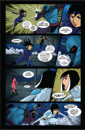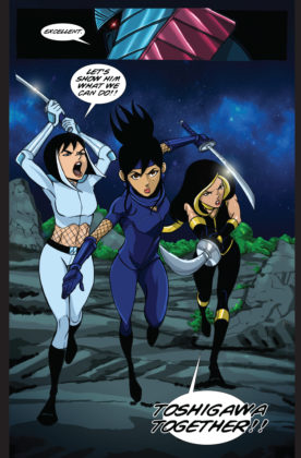 Victory is like capturing lightning in a bottle. With Kim out of commission, it’s up to Turra to lead the team against the Lightning Oni and his Tengu warriors. Little does she know that The Red Dragon holds a secret that could potentially destroy her world. Meanwhile, Shianndrea is on a one-way collision with Yawata, The Oni of Lightning, himself. Will her true power emerge?